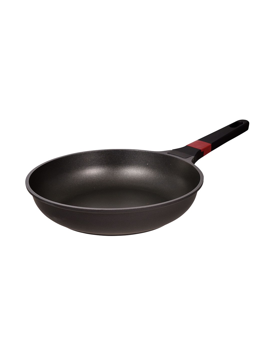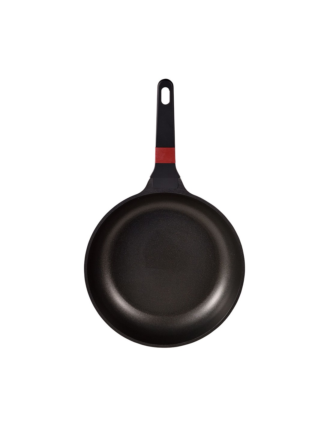 Sartén de aluminio fundido para inducción, interior con revestimiento ilag premium, mango de baquelita con tacto suave y línea de color rojo. ø28 x 6 cm