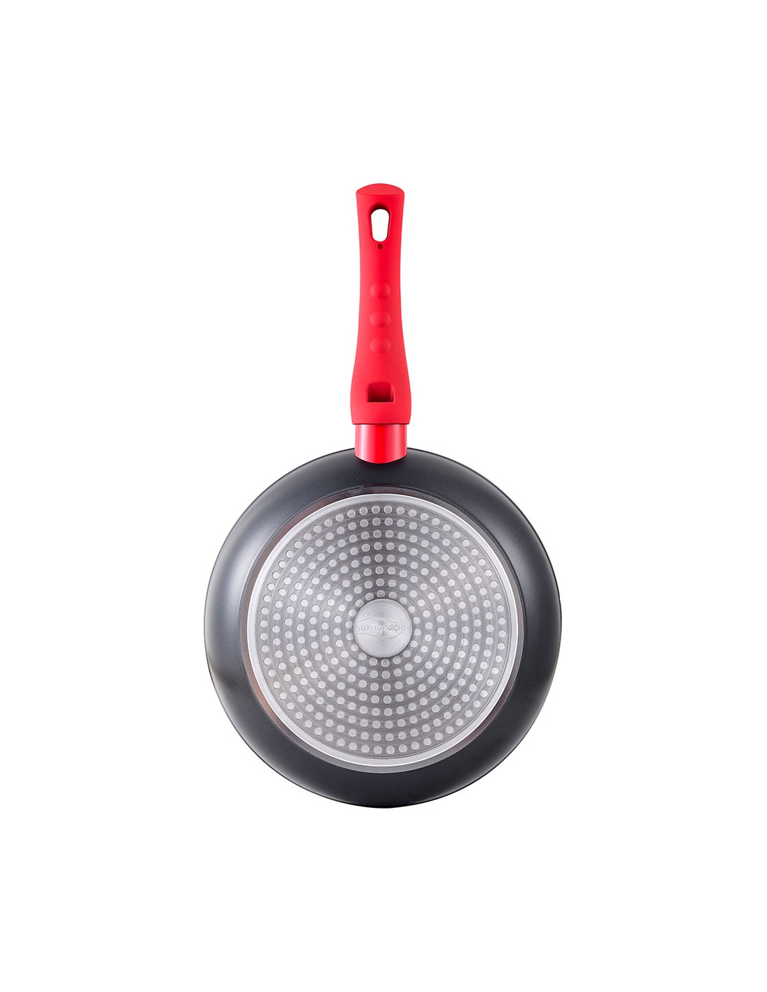 Sartén toledo ø20 cm para inducción, cuerpo fabricado en aluminio forjado, revestimiento antiadherente con acabado marmolado. mango resistente al calor en rojo