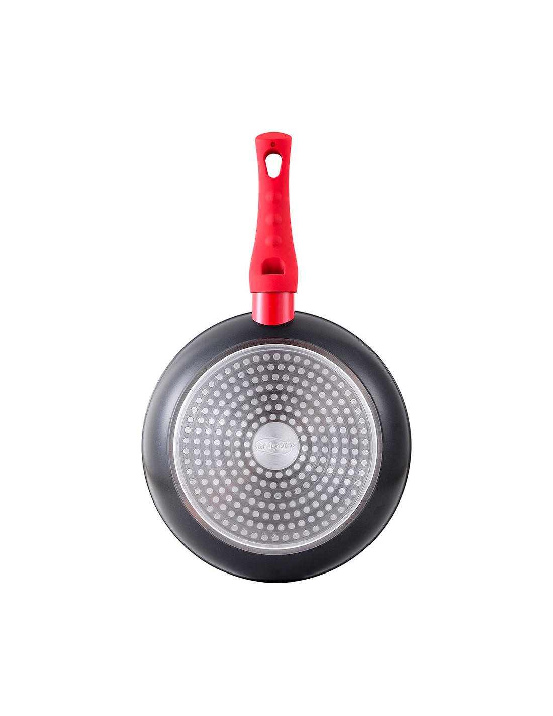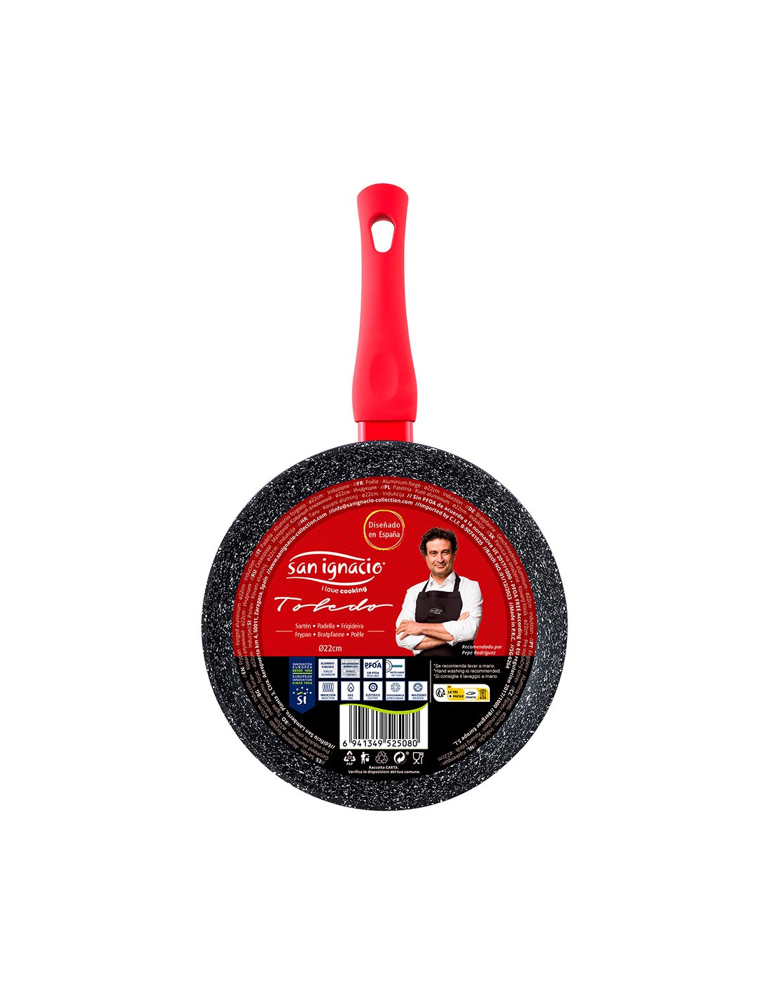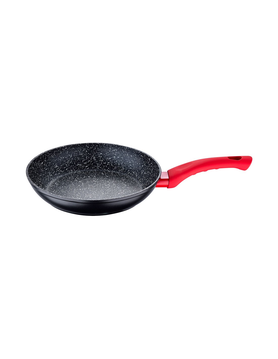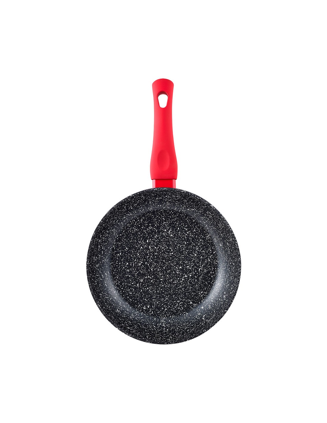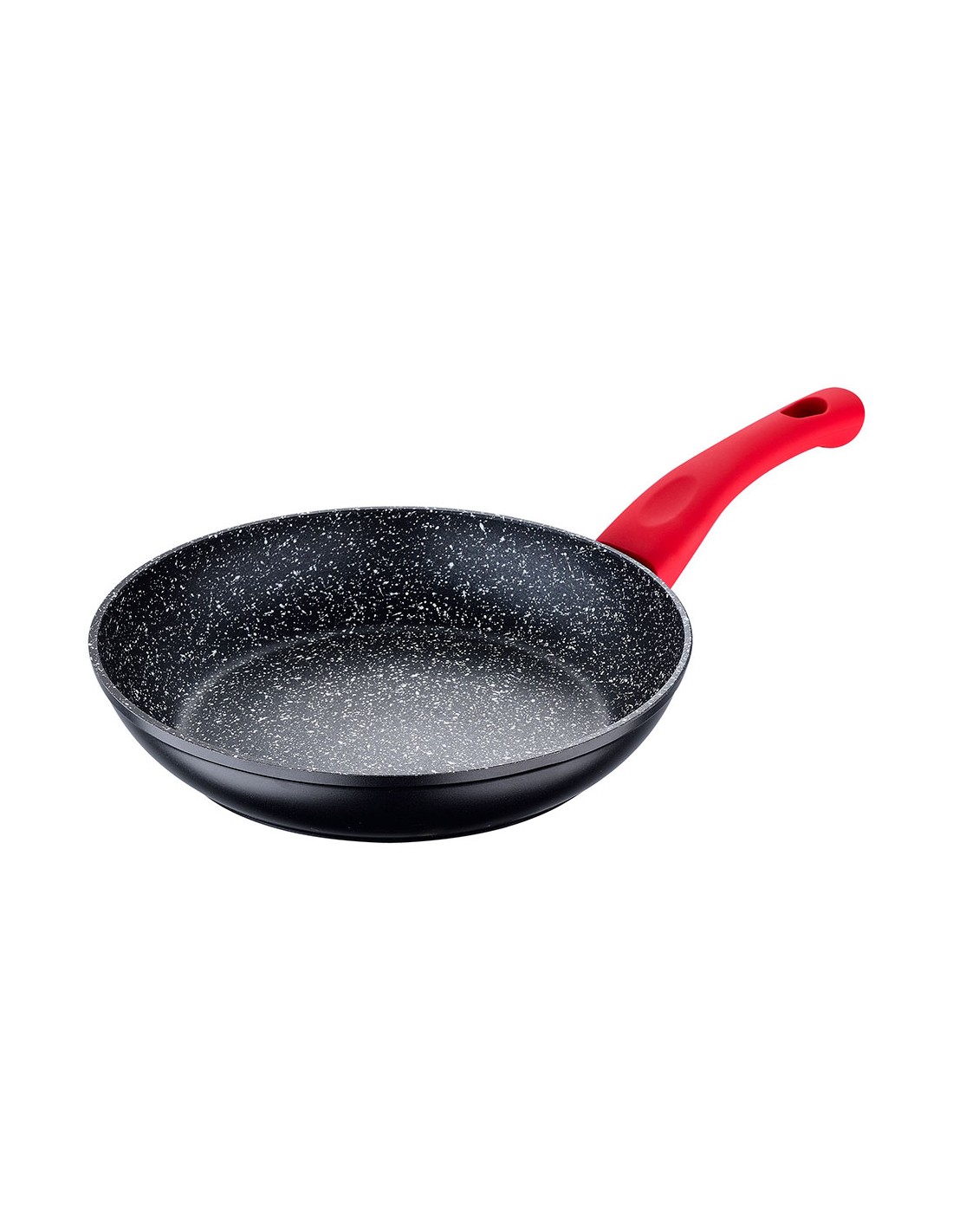 Sartén toledo ø22 cm para inducción, cuerpo fabricado en aluminio forjado, revestimiento antiadherente con acabado marmolado. mango resistente al calor en rojo