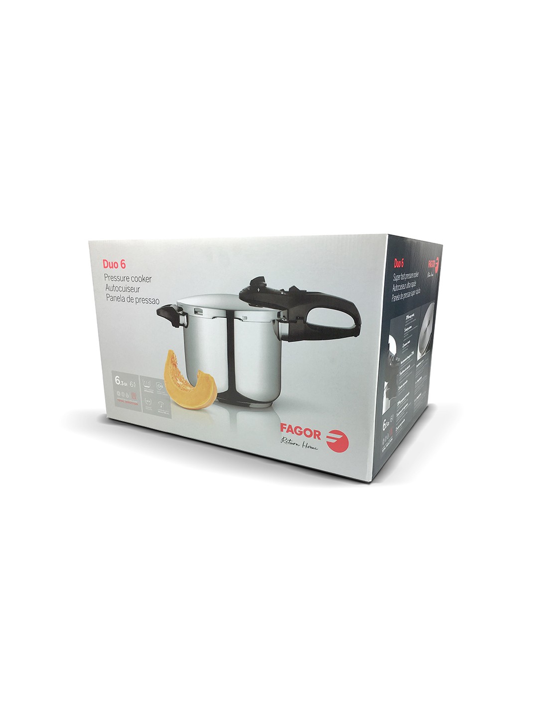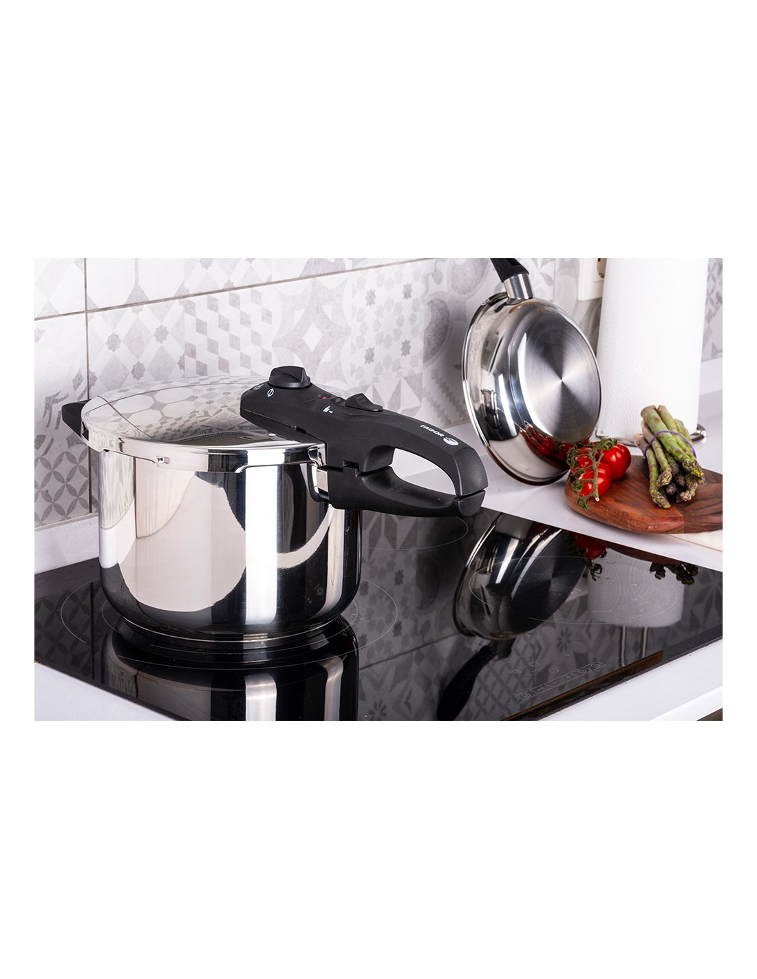 Olla super rápida, duo, 6 l, inox 18/10, ø23 x 17 cm. 2 niveles de presión: rápido 60 kpa y super rápido 100 kpa. 5 sistemas de seguridad, incluido bloqueo automático de la tapa. fondo termodifusor impaksteel de máxima resistencia que optimiza la conductividad térmica. mangos ergonómicos de baquelita termoaislante. apto para todos los fuegos