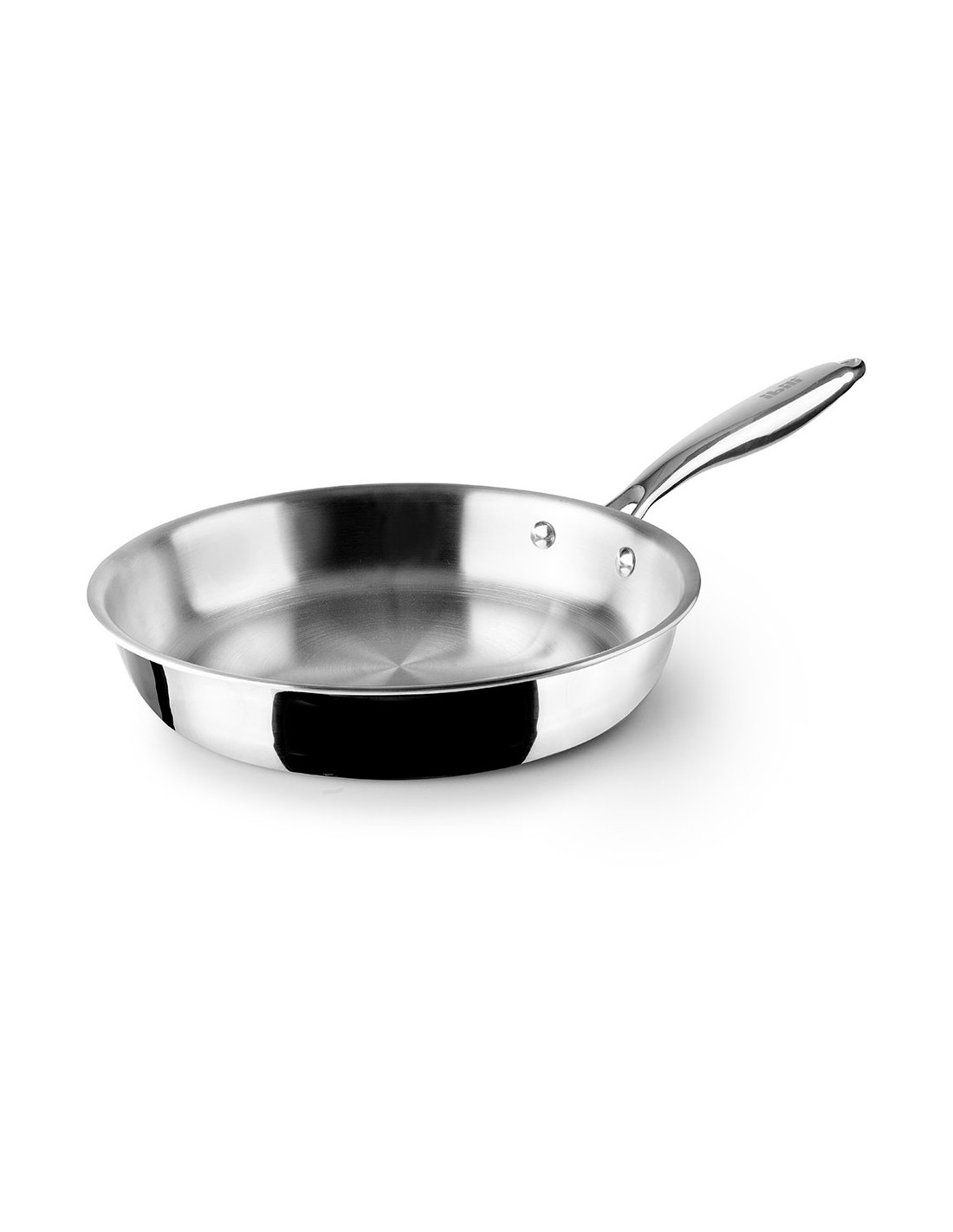 Sartén triply natural, fabricado en material tricapa, acero inoxidable de máxima calidad en las capas exteriores y aluminio integrado sin recubrimiento antiadherente, libre de componentes químicos distribución uniforme del calor en toda la pieza, máxima eficiencia energética mango de acero inoxidable aislante de calor sartén apta para todos los fuegos y horno. medida: ø16 cm