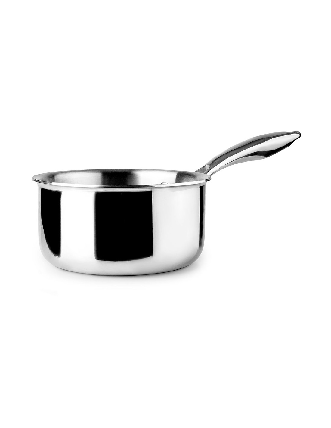 Cazo triply natural, fabricado en material tricapa, acero inoxidable de máxima calidad en las capas exteriores y aluminio integrado. sin recubrimiento antiadherente, libre de componentes químicos, distribución uniforme del calor en toda la pieza, máxima eficiencia energética, mango de acero inoxidable aislante de calor, cazo apto para todos los fuegos y horno, incluye escala medidora hasta 1 l, medidas: ø16 cm