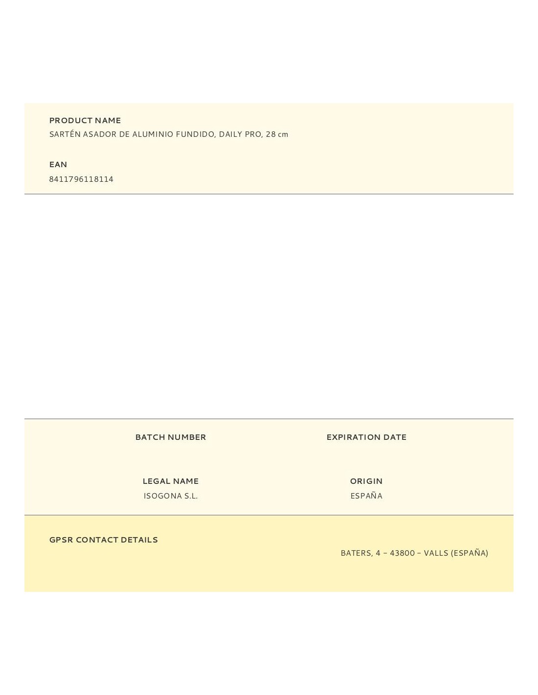 Sartén asador de aluminio fundido con antiadherente tricapa de gran calidad teflón innovation, libre de pfoa, apta para todas las fuentes de calor, fondo de gran espesor, mango negro de baquelita con insert de silicona en color amarillo para un agarre agradable y seguro, apta para lavavajillas, 28 cm