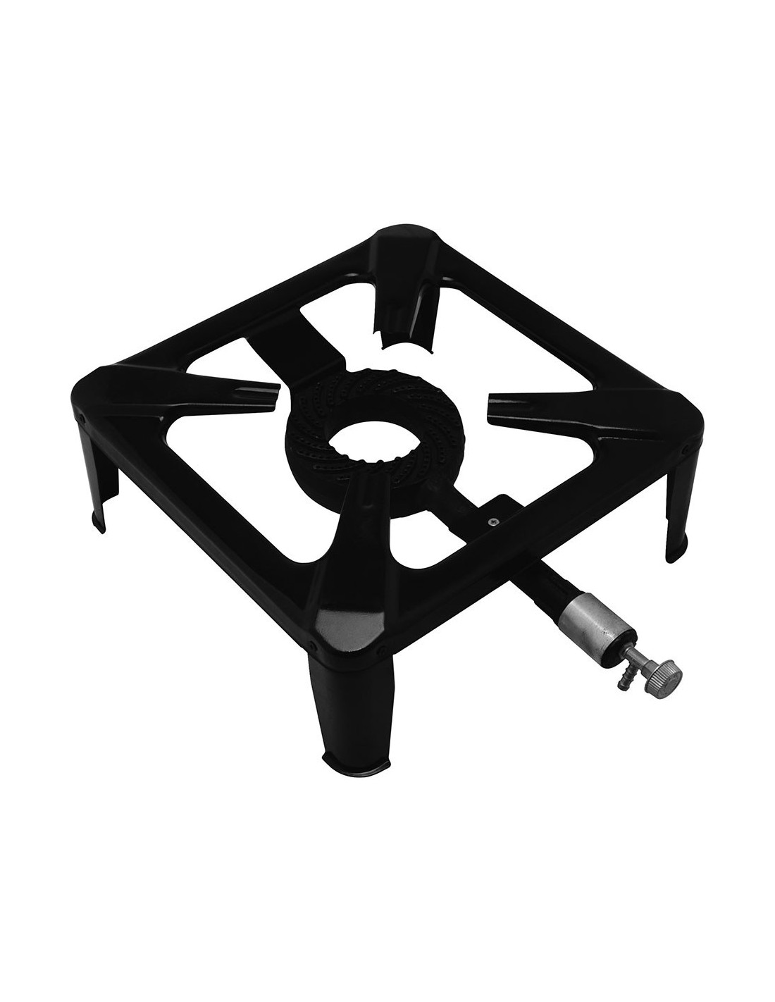 Hornillo a gas 6,5 kw. presión: 30 mbar estructura de chapa esmaltada con quemador de hierro fundido. para gas de butano y de propano su válvula de seguridad previene accidentes o descuidos. su llama es regulable. para uso en exterior dimensiones: 40 x 40 x 15 cm