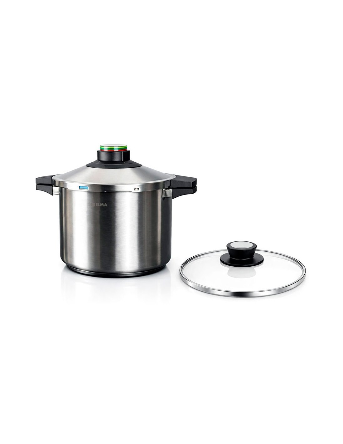 Olla a presión prêst 8 l, de acero inoxidable 18/10 de gran espesor, con triple sistema de seguridad, válvula indicadora de 3 colores para un control preciso y válvula con 2 posiciones de cocinado (nivel i: 0,85 bar / nivel ii: 1,05 bar) más una de descompresión para una liberación de vapor controlada, fondo difusor encapsulado con diámetro amplio (24 cm) para una óptima distribución del calor, asas con inserto metálico para un ajuste duradero y diseño de doble asa, junta de silicona de 24 cm. apta para todo tipo de cocinas: inducción, gas, vitrocerámica y eléctrica. incluye tapa de presión de ø24 cm y tapa de cristal