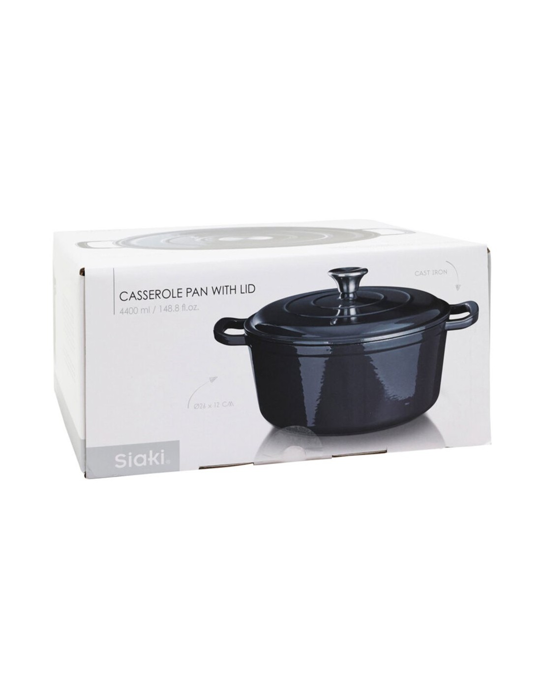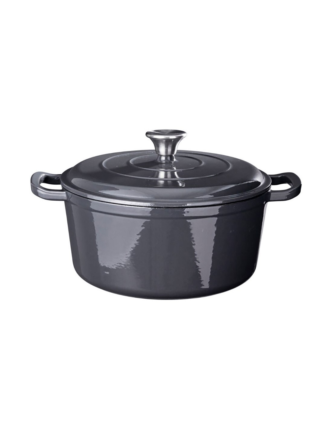 Cacerola de hierro fundido esmaltado color gris, apta para todo tipo de fuegos y horno, no apta para microondas y lavavajillas. ø26 x 12 cm