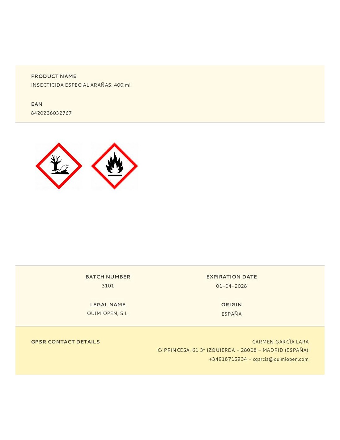 Insecticida en aerosol de 400 ml. contra insectos rastreros, especialmente elimina arañas. efecto prolongado, apto para exteriores e interiores, ø3 m de acción