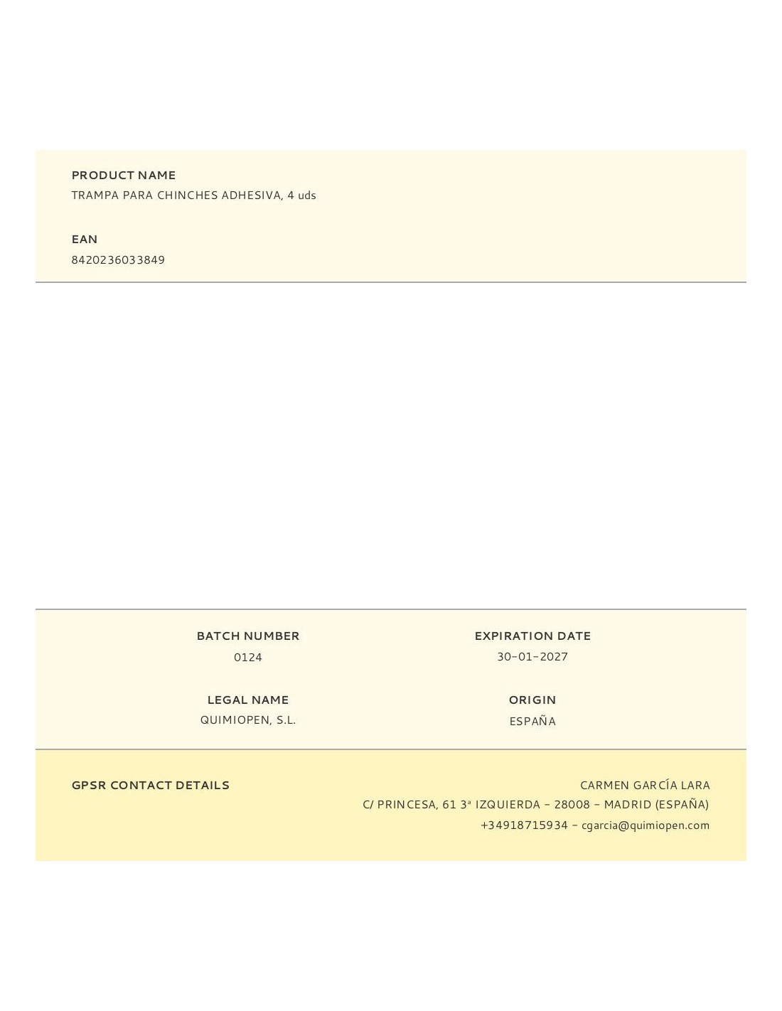 Trampa adhesiva de una cara para la detección del chinche común. libre de insecticidas, actúa como una barrera física para atrapar o prevenir invasiones de chinches contiene 4 uds