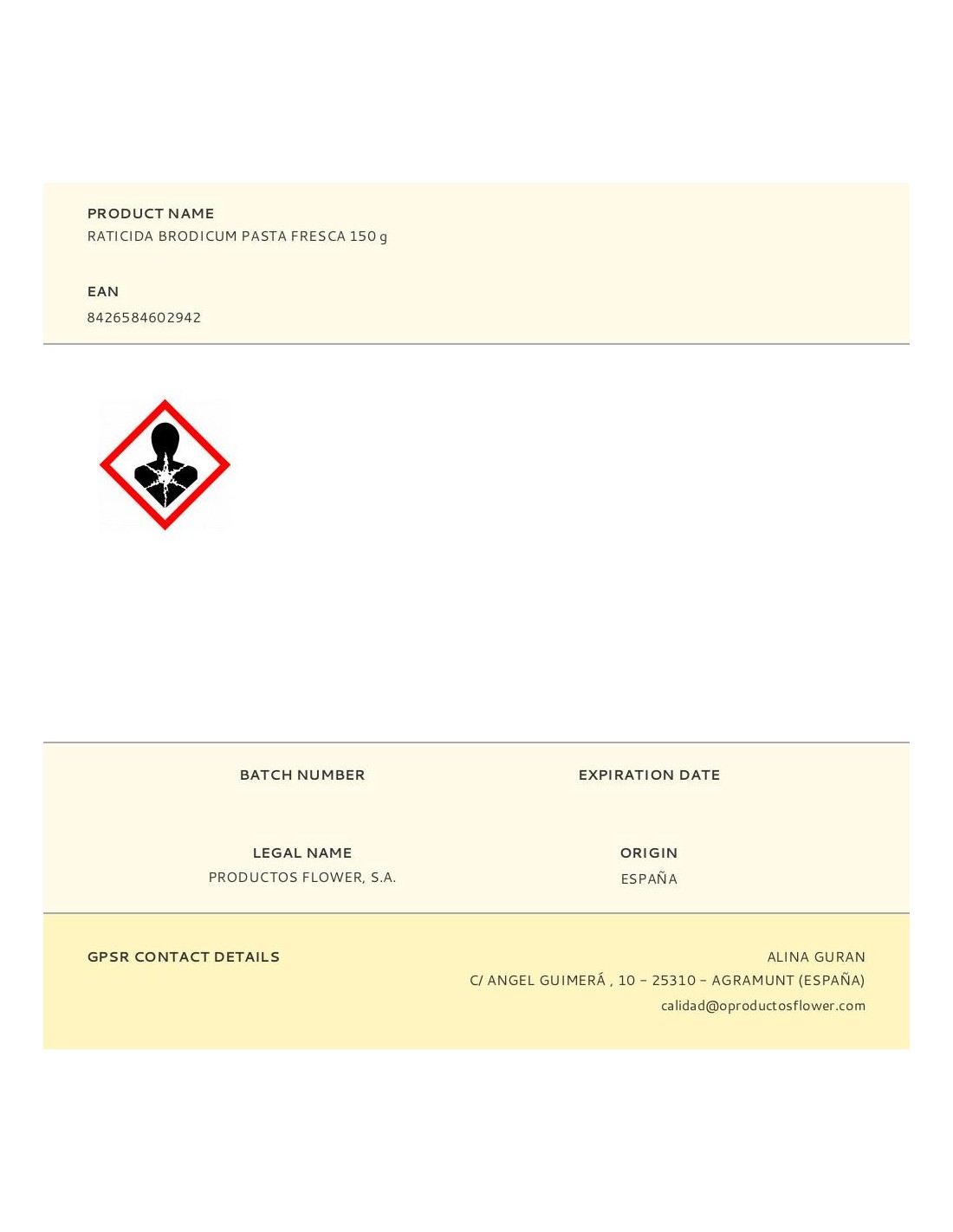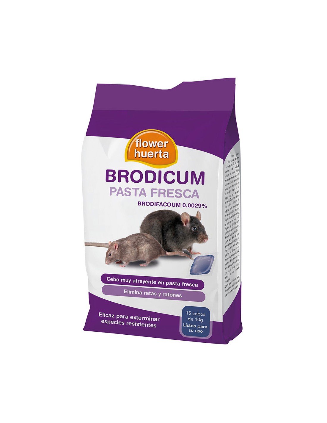 Brodicum pasta fresca raticida 150 g es un rodenticida de acción anticoagulante. por su efecto retardado desde la ingesta, los roedores suelen morir en sus nidos. contiene cereales y otros alimentos que atraen fuertemente a los roedores. es activo contra roedores resistentes a la warfarina. autorizado uso doméstico