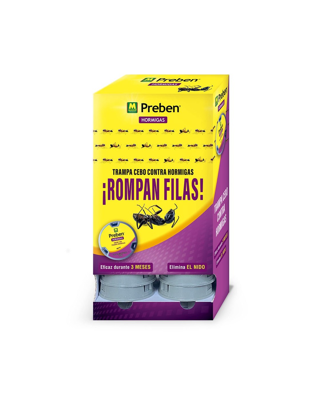 Insecticida con cebo: gel atrayente en forma de caja, trampa-cebo lista para usar. elimina las hormigas comunes tanto en interiores como en exteriores. con efecto duradero en el control de hormigas (adultos y larvas). las hormigas consumen el producto y lo transportan al hormiguero, lo que acarrea su destrucción. presentado en expositor 24 uds