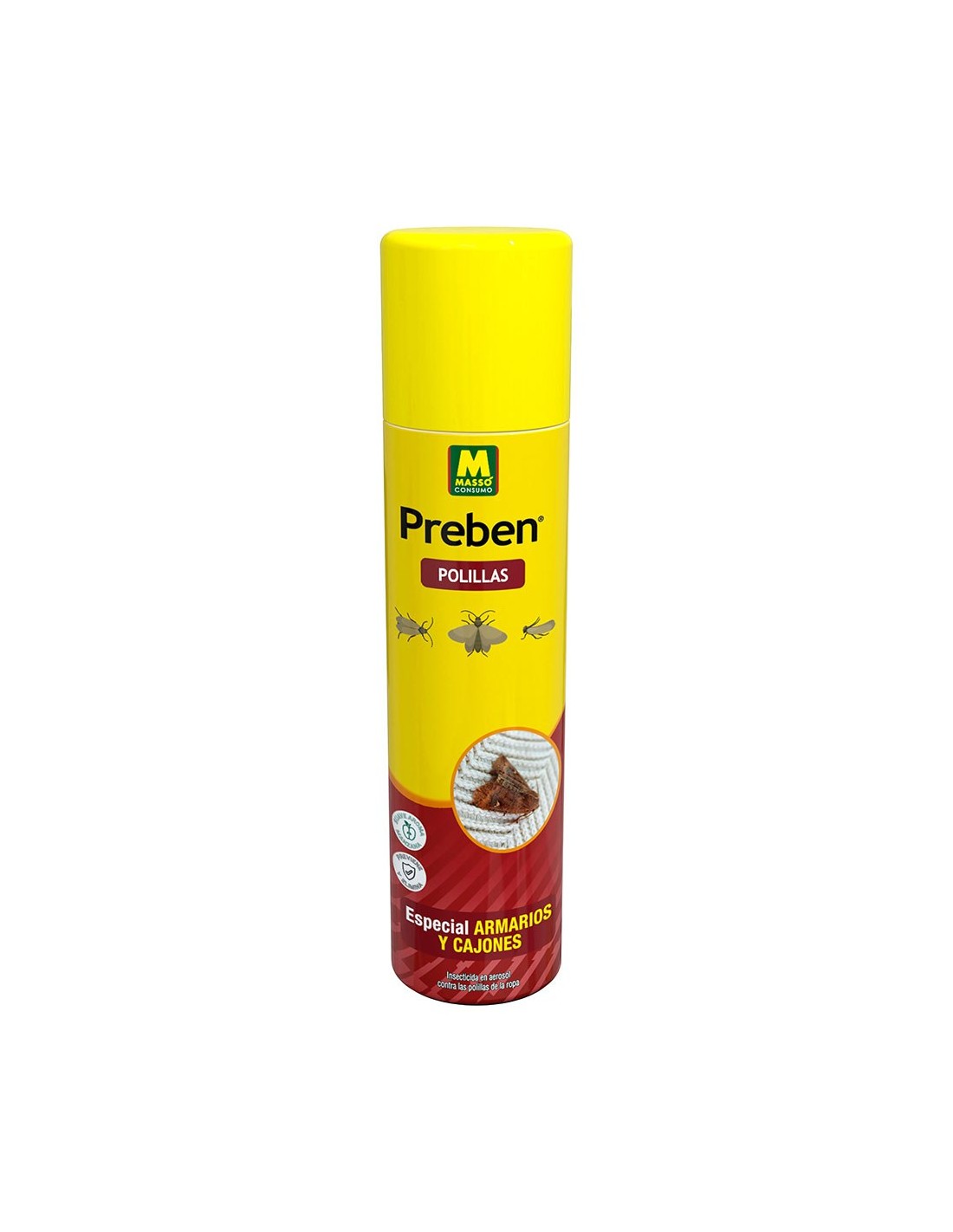 Insecticida en aerosol para proteger la ropa de los daños que causan las polillas. previene y trata. suave aroma a manzana, sensación de frescor y limpieza. ideal para armarios, cajones, baúles, cómodas, roperos y vestidores. modo de empleo: aplicación mediante pulverización localizada dirigida a las zonas a tratar siempre vacías, ventilar y esperar 1 o 2 horas antes de guardar la ropa. la aplicación se puede repetir dos veces al año, coincidiendo con los cambios de estación, 300 ml