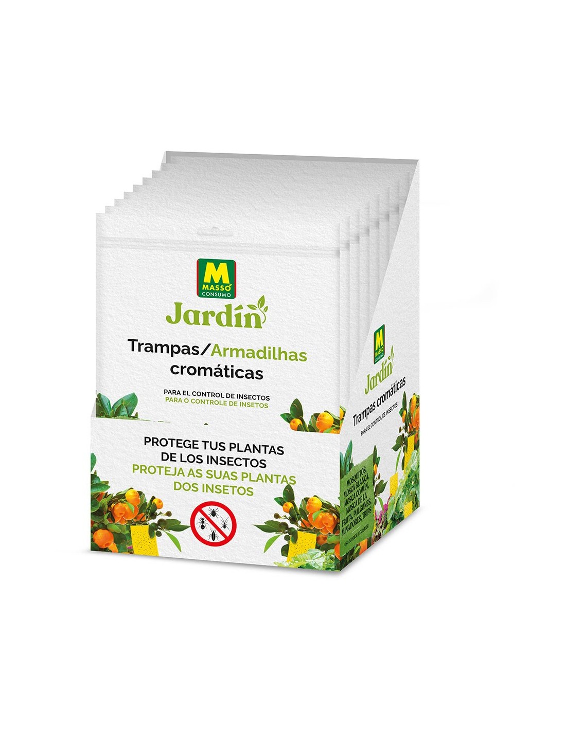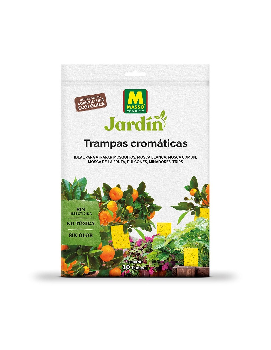 Trampas adhesivas para atrapar mosquitos, mosca blanca, mosca común, mosca de la fruta, pulgones, minadores y trips. el color amarillo atrae a los insectos, que se quedan atrapados en el pegamento. listo para su uso. limpias, seguras y eficaces. sin insecticidas. con cola en las dos caras que no se seca. para uso en interior y exterior. ni la lluvia, ni el riego por aspersión, ni las inclemencias meteorológicas alteran su eficacia. se pueden recortar fácilmente a la medida deseada. medidas: 17 x 24 cm. contiene 10 uds. presentada en expositor 25 uds