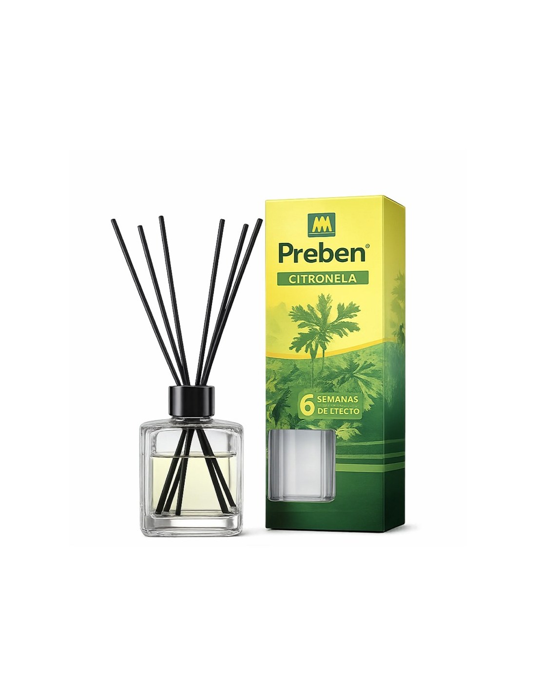 Mikado con citronela, 90 ml. ambientador con varillas difusoras. aroma a citronela fresco y agradable. duración: hasta 6 semanas