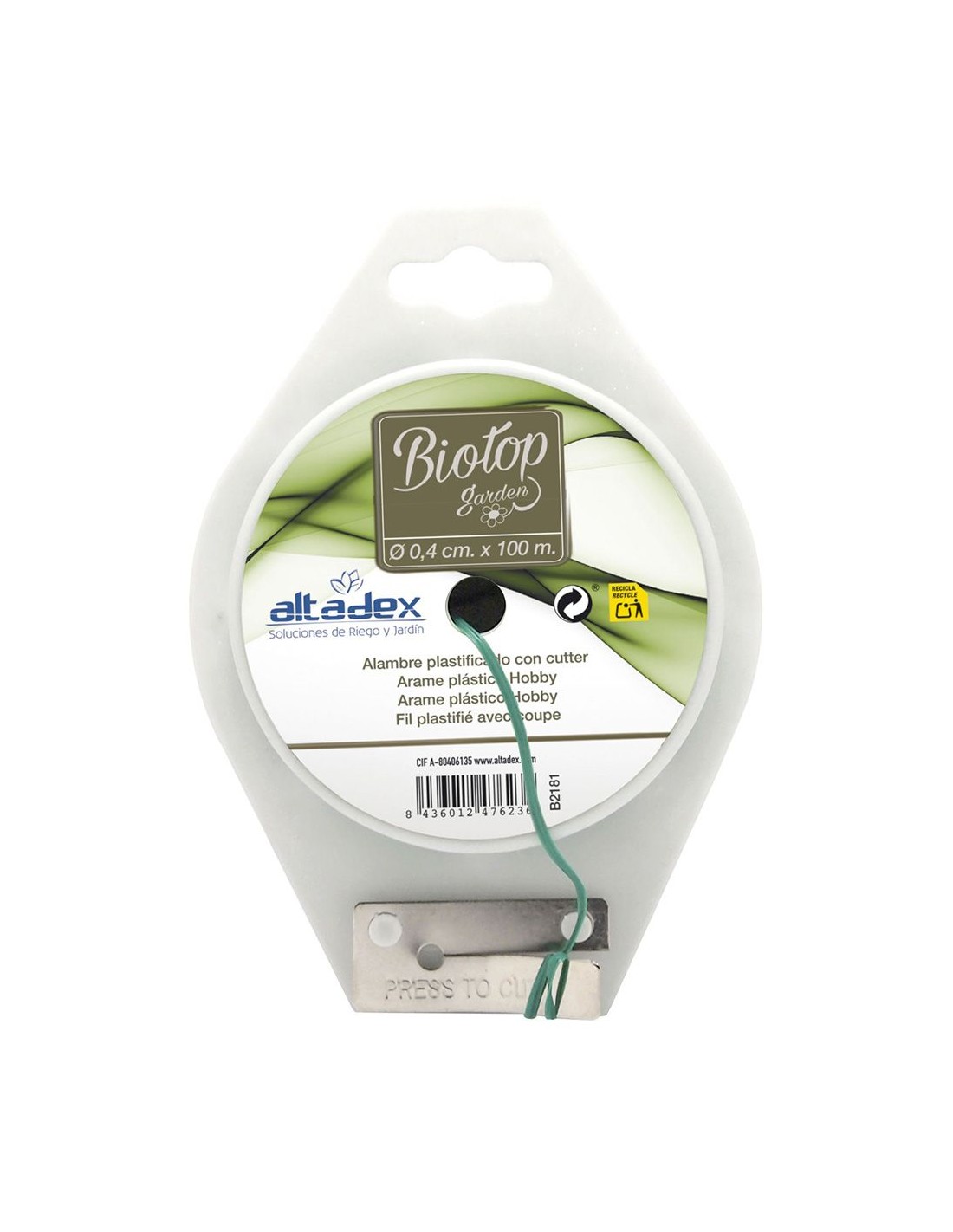 Alambre plastificado verde, incluye cortador incorporado en el carrete, ideal para trabajos continuos en jardín y huerto, ø2 mm x 100 m