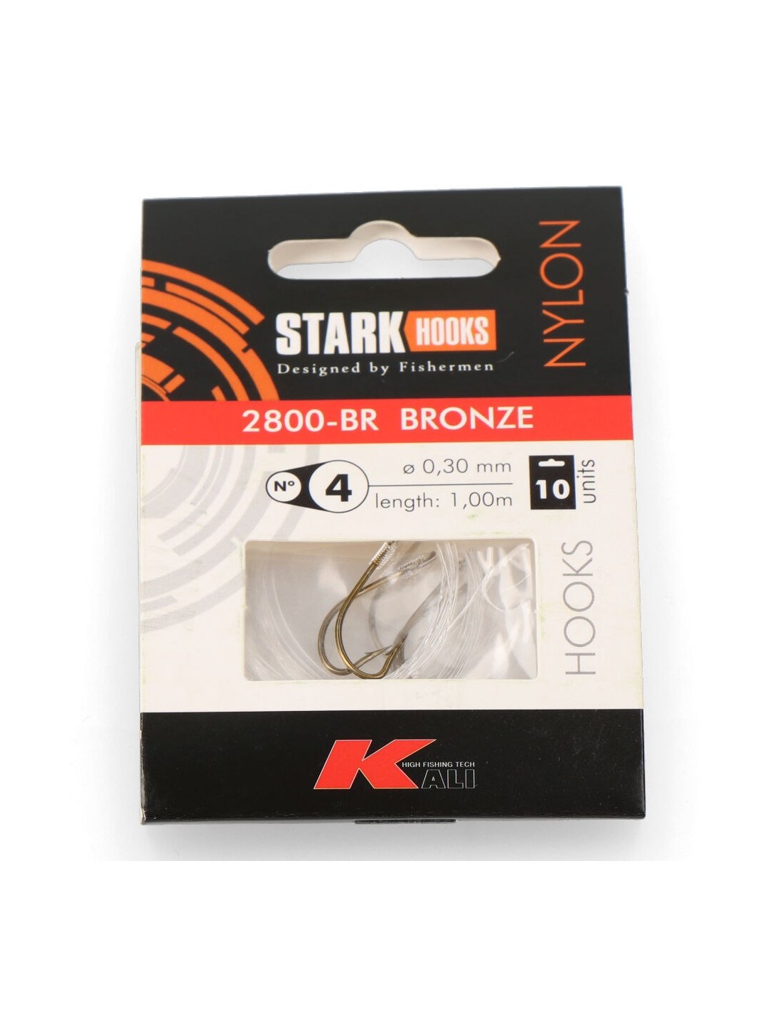 Cartera de 10 anzuelos bronceados tamaño nº 4, 2800-br, montados rectos con 1 m de monofilamento de ø0,30 mm