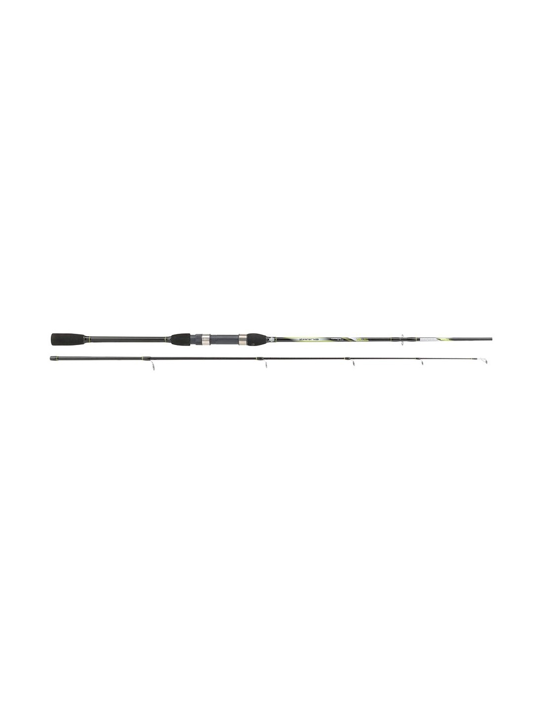 Caña enchufable de carbono, empuñadura de espuma antideslizante negra, portacarretes a rosca de fibra y metal, cerámicas tipo hard monopata, bastidor cromado y funda de tela, 210 cm de largo, 2 secciones, acción de alcance 15-40 g, 2 secciones, ø12 mm, diseñada para la pesca a spinning tanto de agua dulce como en el mar