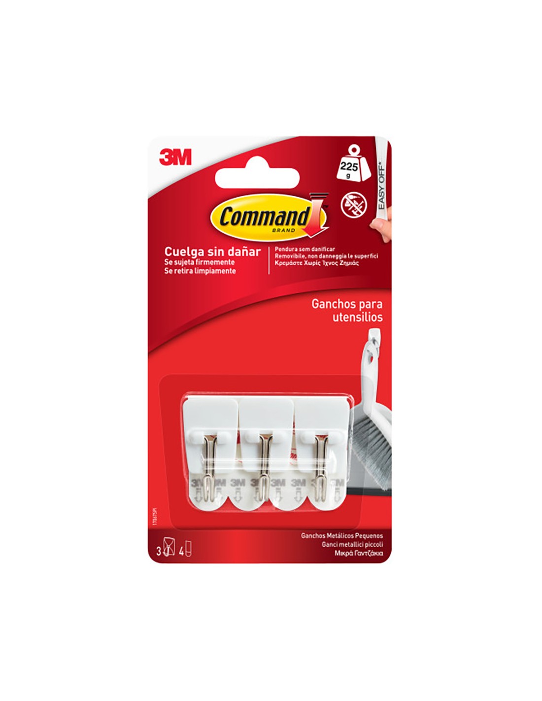 Gancho punta de alambre, pequeño, 19 x 41 x 19 mm, 3 uds + 4 tiras, máx 225 gr
