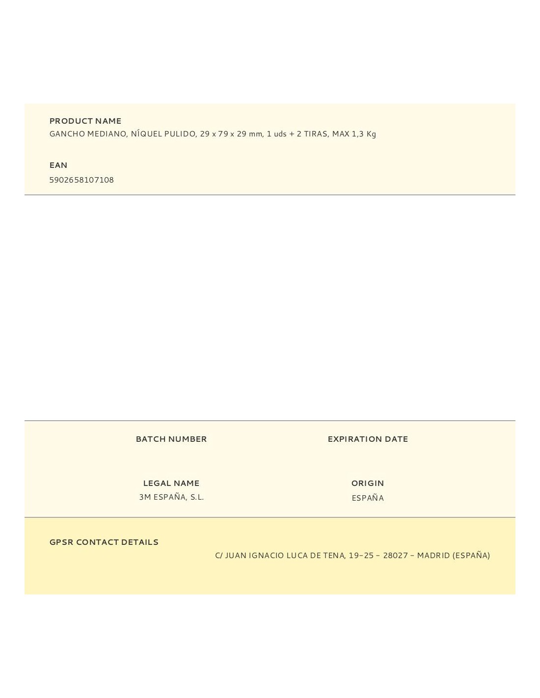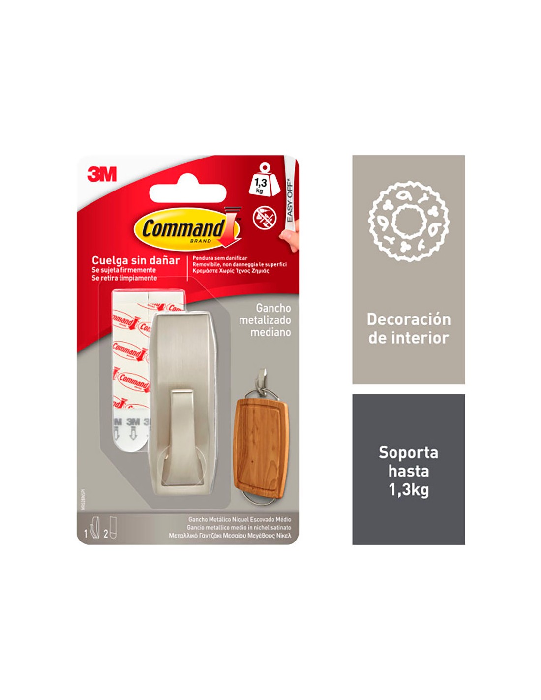 Gancho mediano, níquel pulido, 29 x 79 x 29 mm, 1 uds + 2 tiras, max 1,3 kg