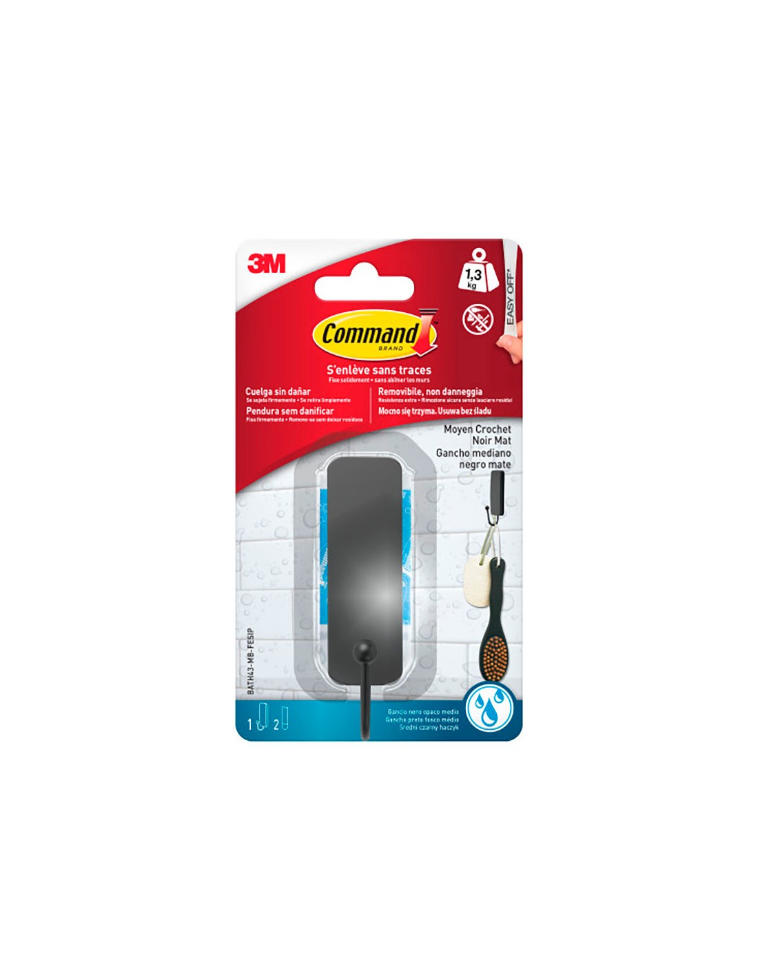 Gancho mediano, negro mate, 25 x 35 x 95 mm, 1 ud + 2 tiras, máx 1,3 kg