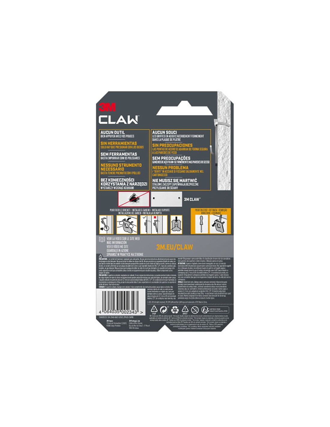 Gancho para paredes de yeso, 20 kg, 28 x 41 x 4...
