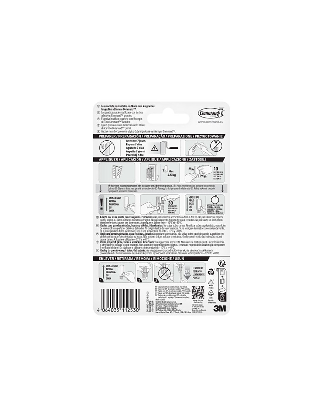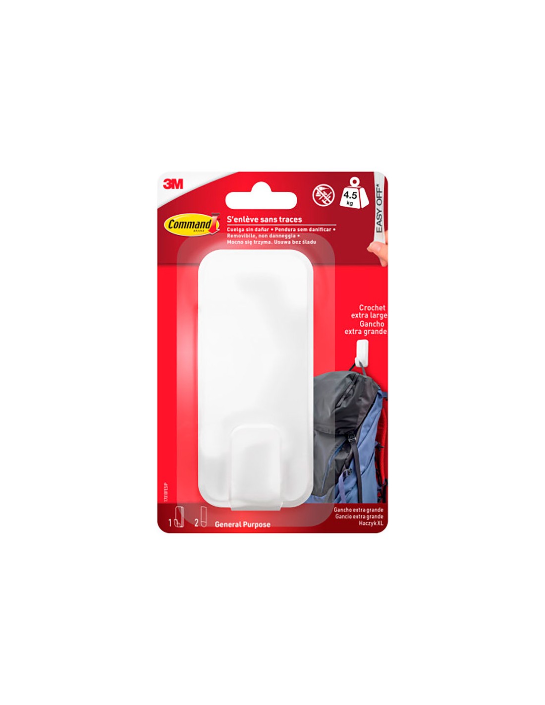 Gancho para utensilios, extragrande, blanco, 1 ud + 2 tiras, máx 4,5 kg