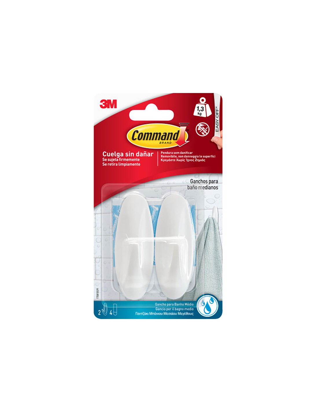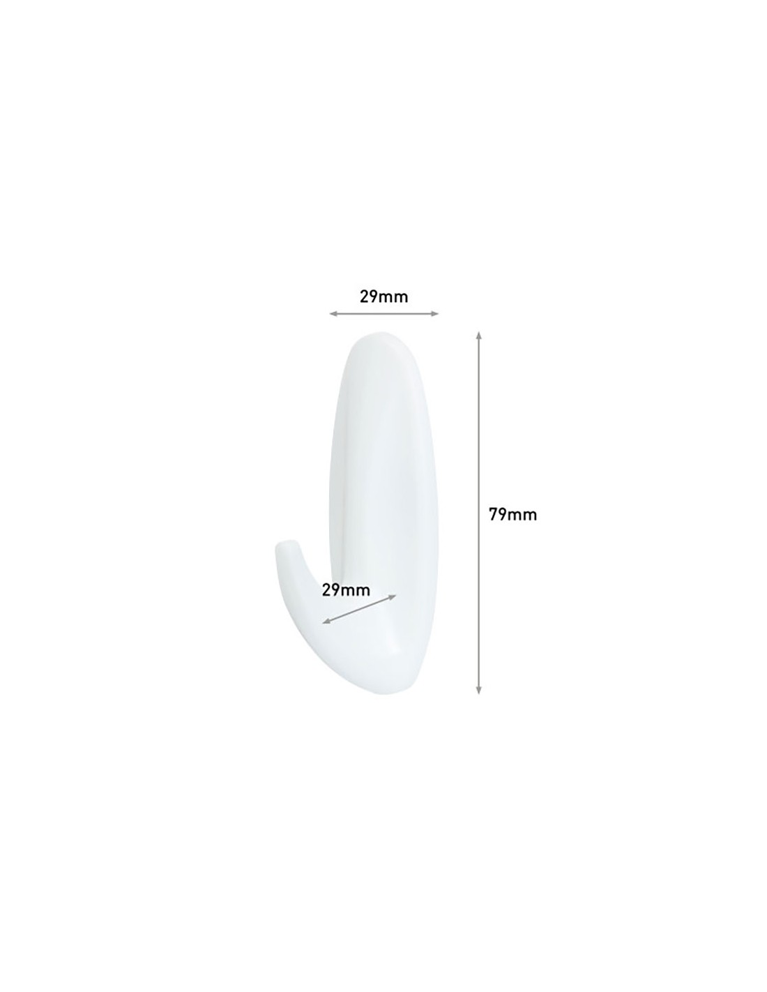 Gancho blanco, mediano, 29 x 79 x 29 mm, 2 uds + 4 tiras, máx 1,3 kg