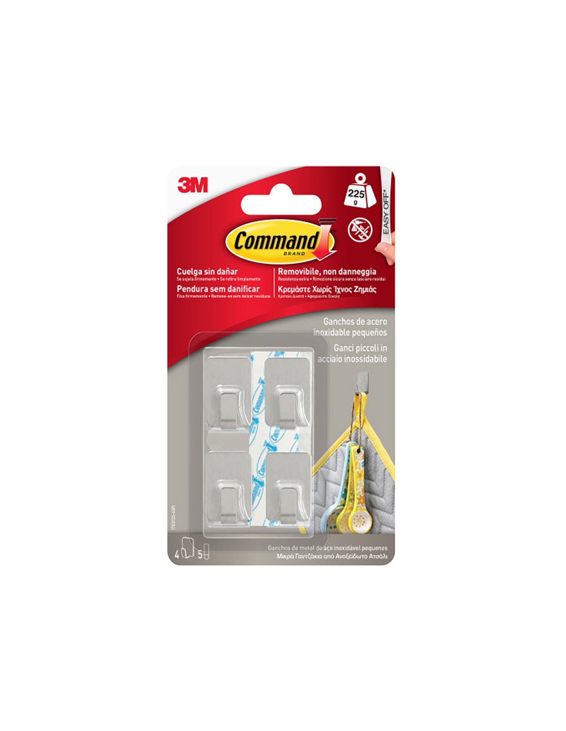 Gancho de acero inoxidable, pequeño, 19 x 30 x 15 mm, 4 uds + 5 tiras, máx 225 gr