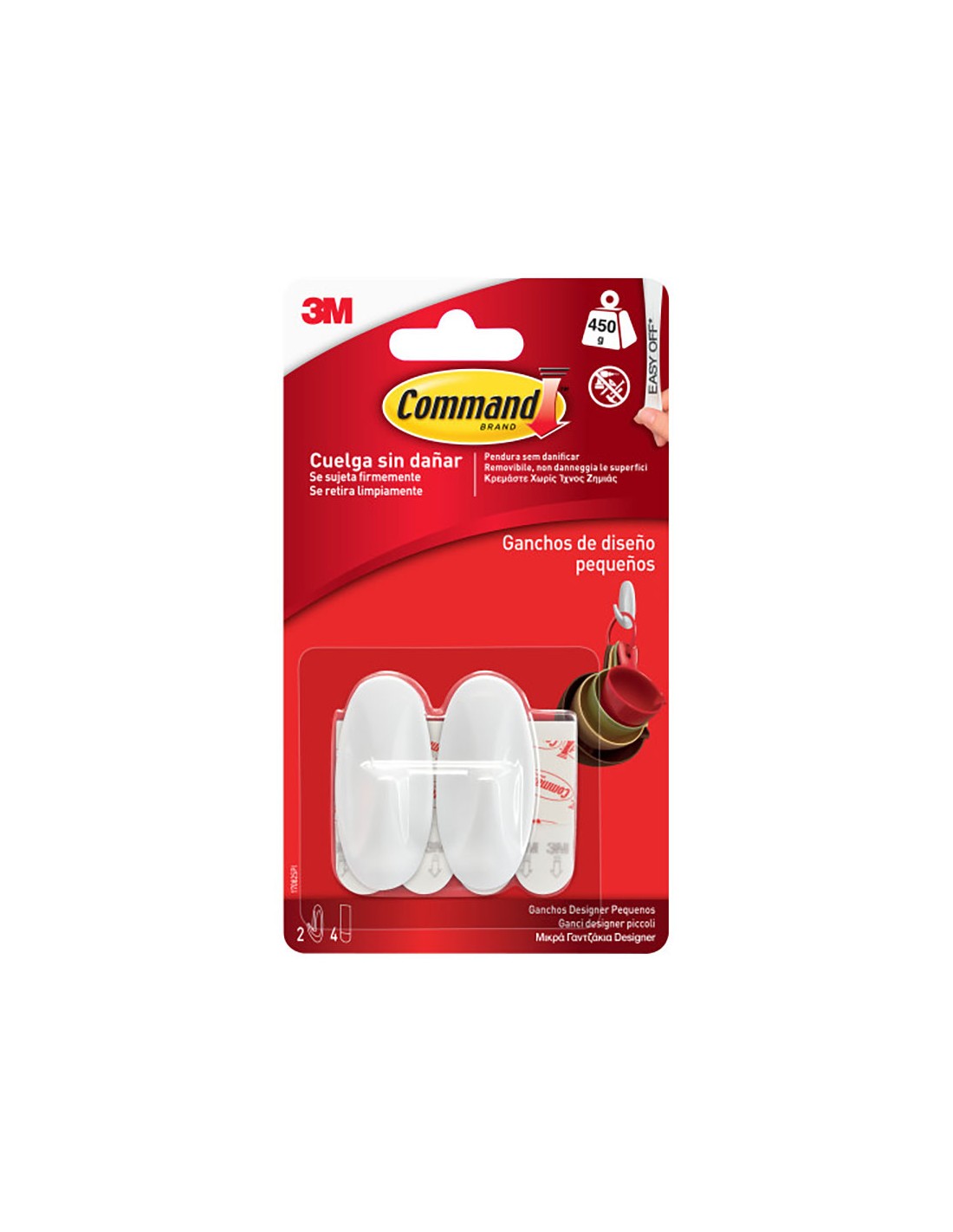 Gancho de diseño pequeño, blanco, 2 uds + 4...