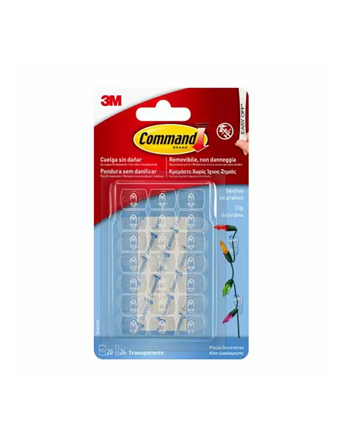 Mini gancho decorativo, transparente, 20 uds + 24 tiras, 17026clr