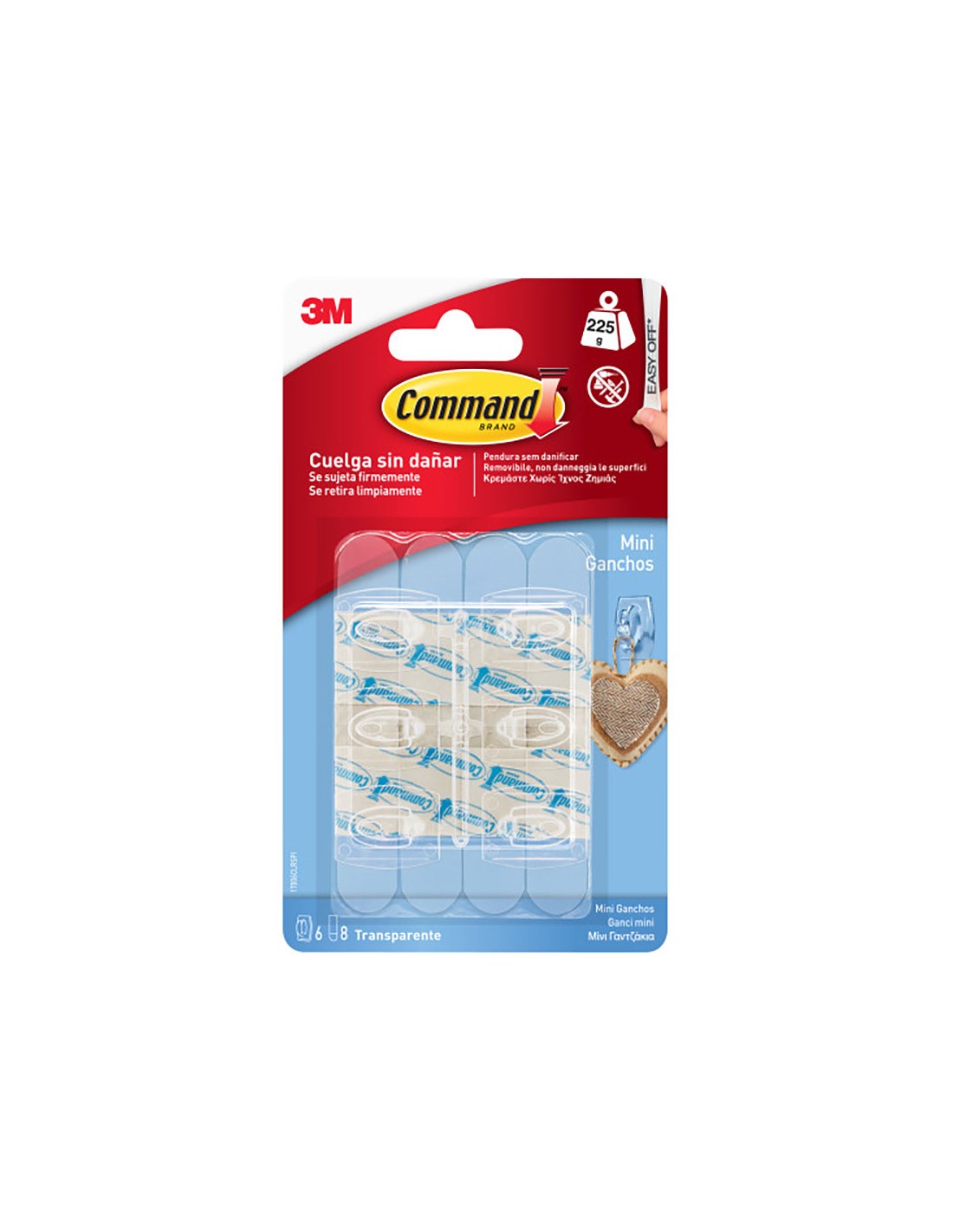 Mini ganchos, transparentes, 22 x 29 x 11 mm, 6 uds + 8 tiras, máx 225 g
