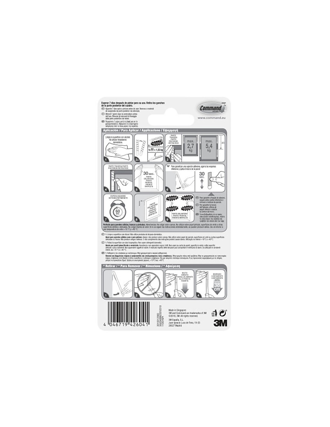 Tiras para colgar cuadros 17207. contiene 4 pares de tiras estrechas con carga máxima 5,4 kg