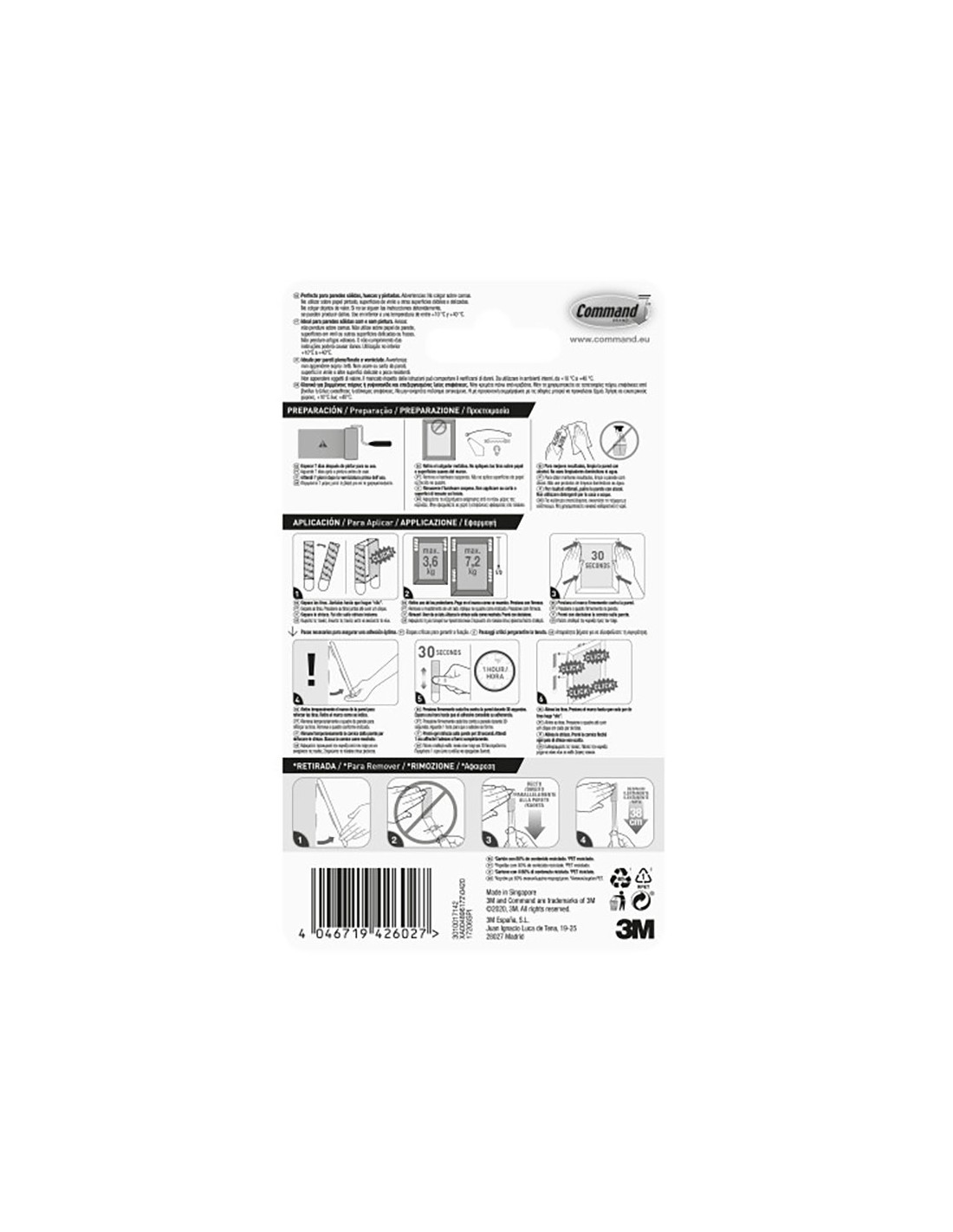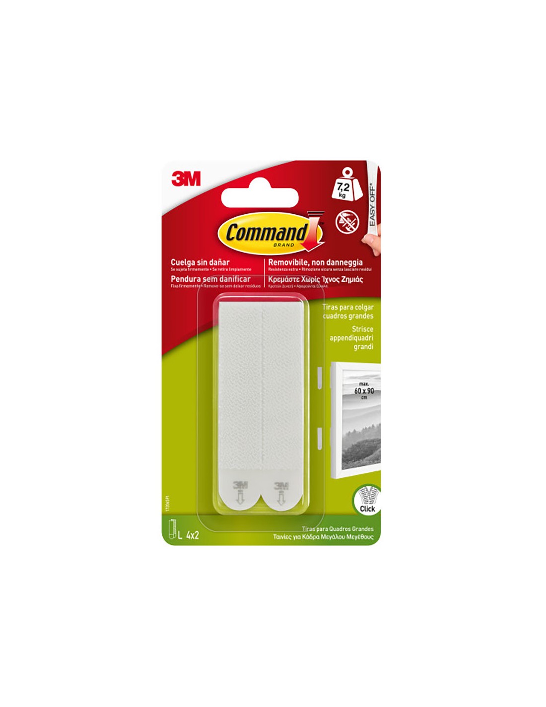 Tiras para colgar cuadros 17206. contiene 4 pares de tiras grandes con carga máxima 7,2 kg
