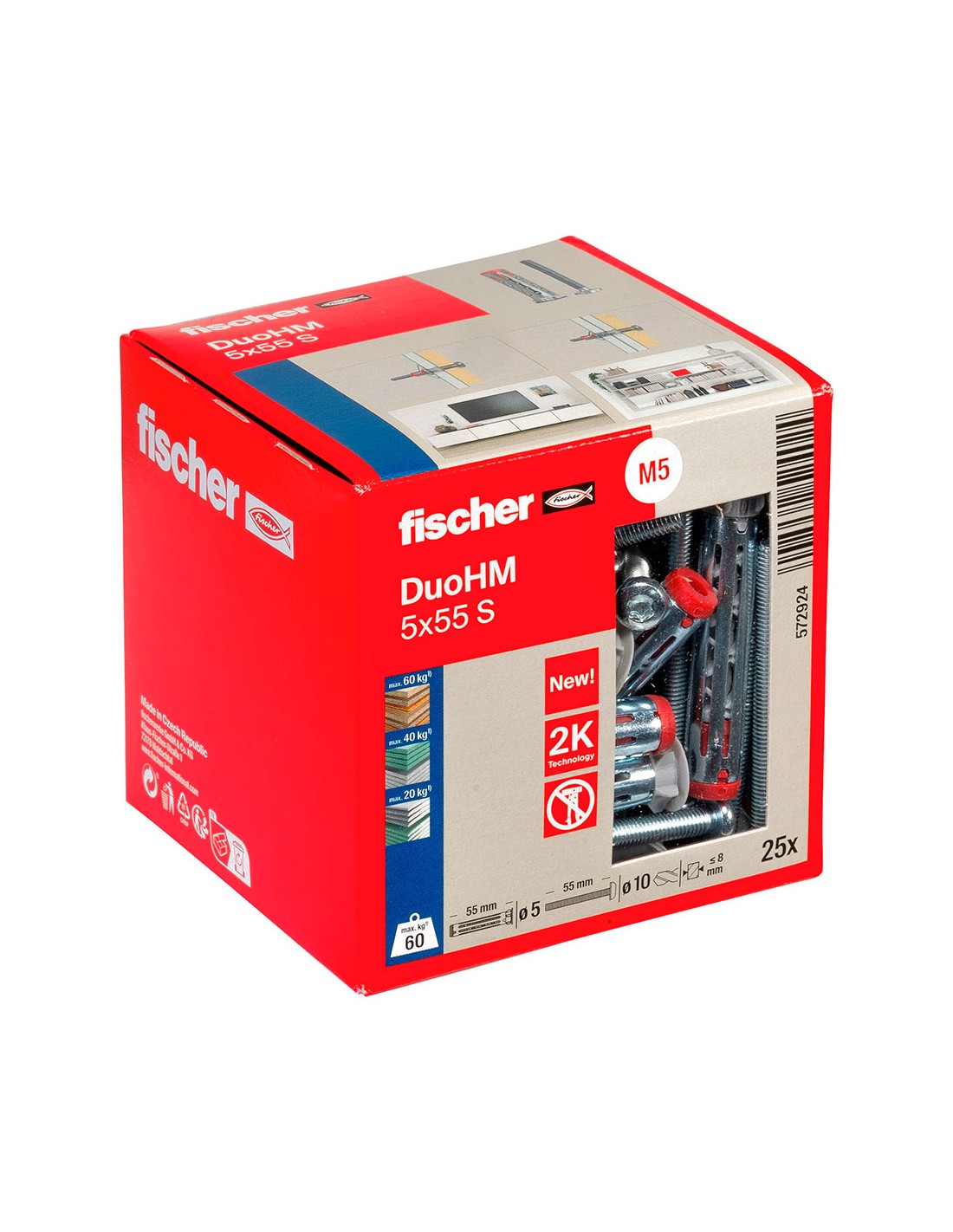 Tacos duo hm ø5 x 55 mm + tornillos ø10 x 55 mm, caja 25 uds