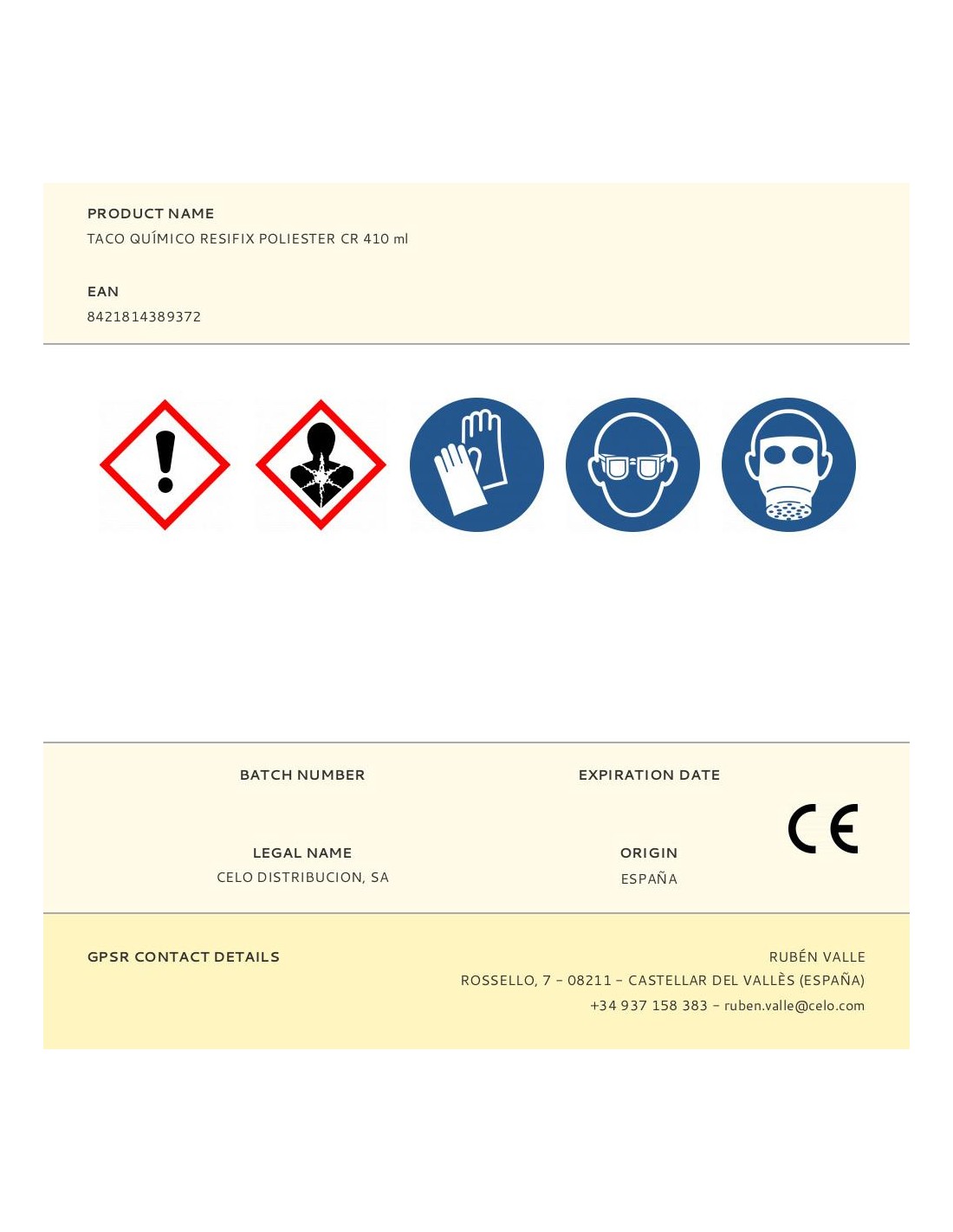 Taco químico resifix poliéster py410, homologado en ce, para aplicaciones en hormigón no fisurado y mampostería (m8 - m16). garantiza altas cargas y una instalación libre de fuerzas de expansión de varillas de anclaje, pernos de anclaje, tubos cuadrados, pernos y tornillos, etc. se puede utilizar en perforaciones húmedas o llenas de agua, 410 ml