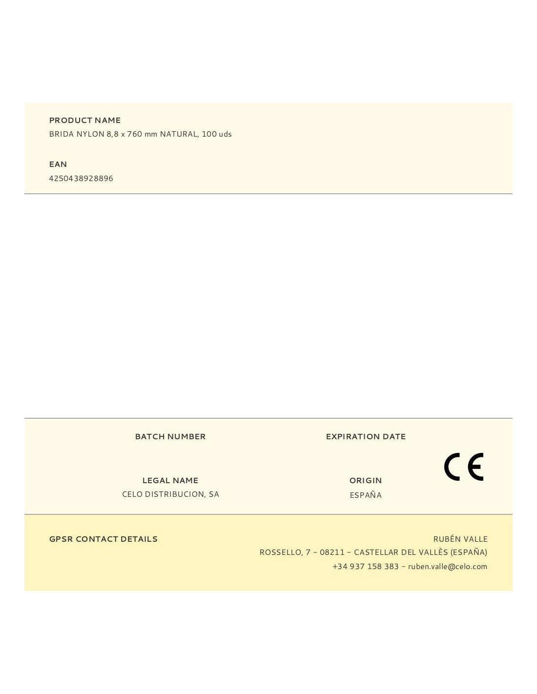 Brida nylon 8,8 x 760 mm, natural, uso: diámetro mínimo 9 mm, máximo 229,5 mm carga máx 80 kg, uso de interior, 50 uds