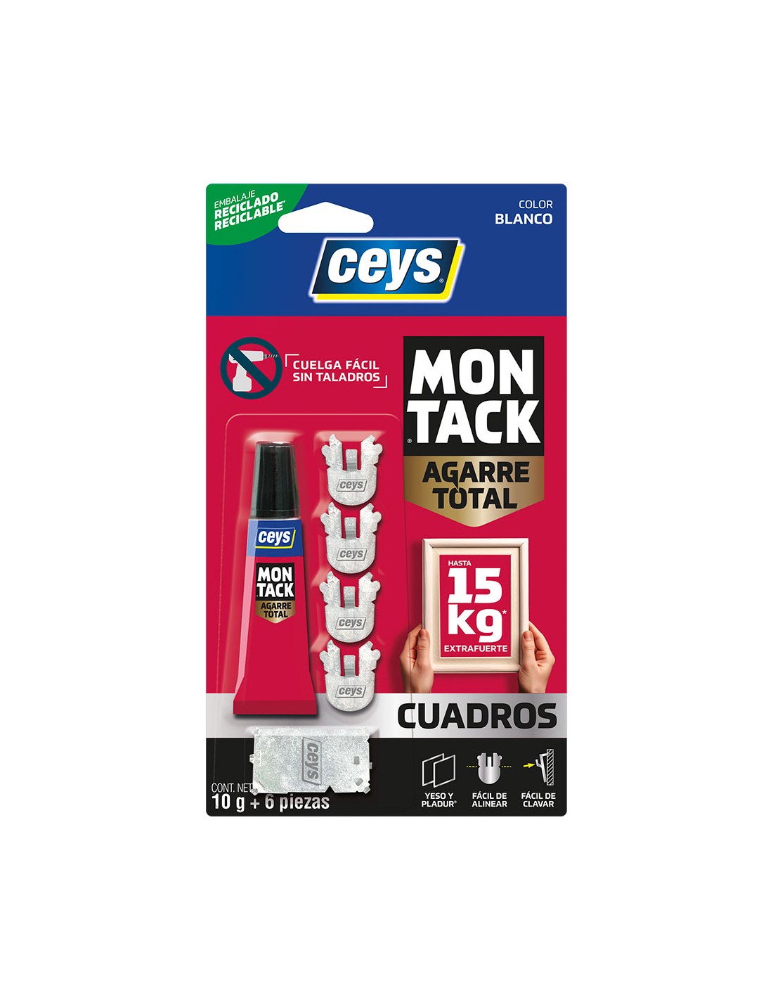 Montack agarre total cuadros en yeso y pladur, carga máxima 15 kg, 10 g + 6 piezas