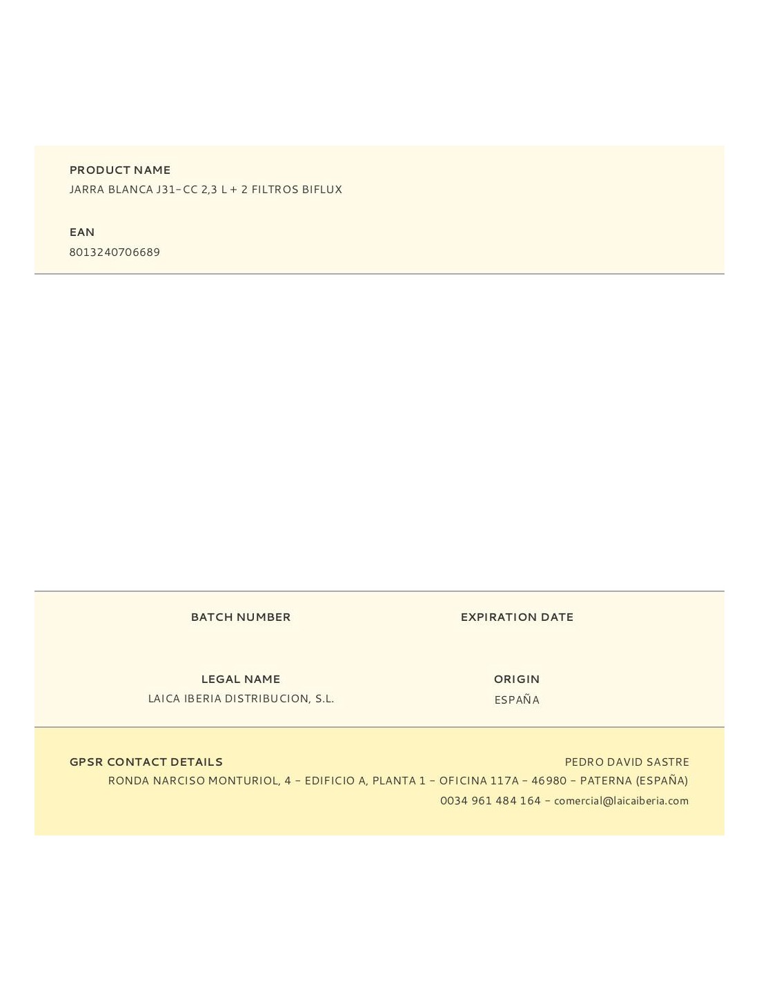 Pack de 1 jarra de filtración de 2,3 litros j31-cc blanca + 2 filtros bi-flux. cada filtro tiene una duración de 150 litros o 1 mes. la jarra tiene un timer mecánico para controlar la duración del filtro. el filtro bi- flux reduce el cloro, la cal, metales pesados, contaminantes químicos y algunos pesticidas y herbicidas