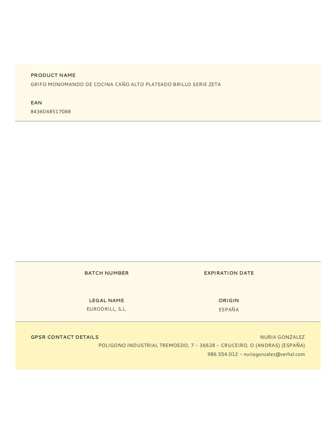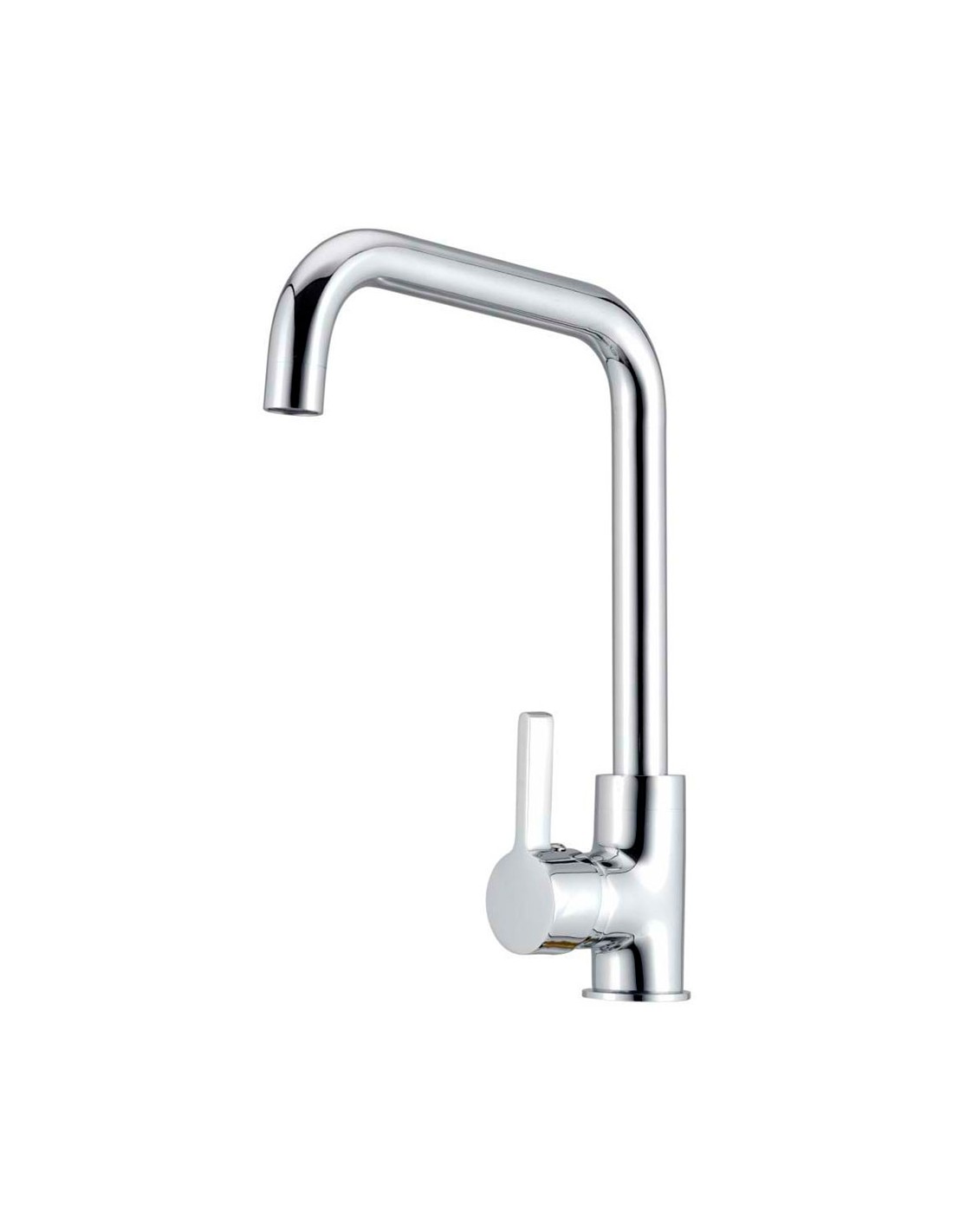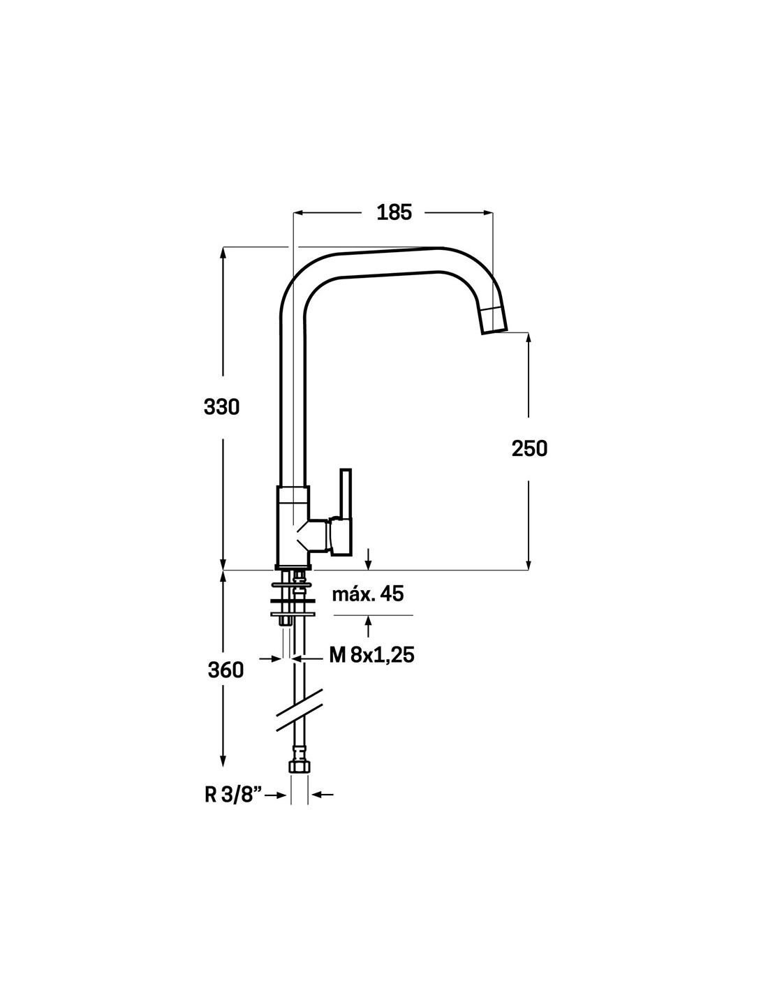 Grifo de cocina monomando caño alto zeta plateado brillo cuerpo de latón, cartucho ø35, caño giratorio incluye: conexiones flexitub con certificado aenor m10 3/8" x 350 mm, juego de fijación m8. dimensiones: ø50 x 185 x 330 mm
