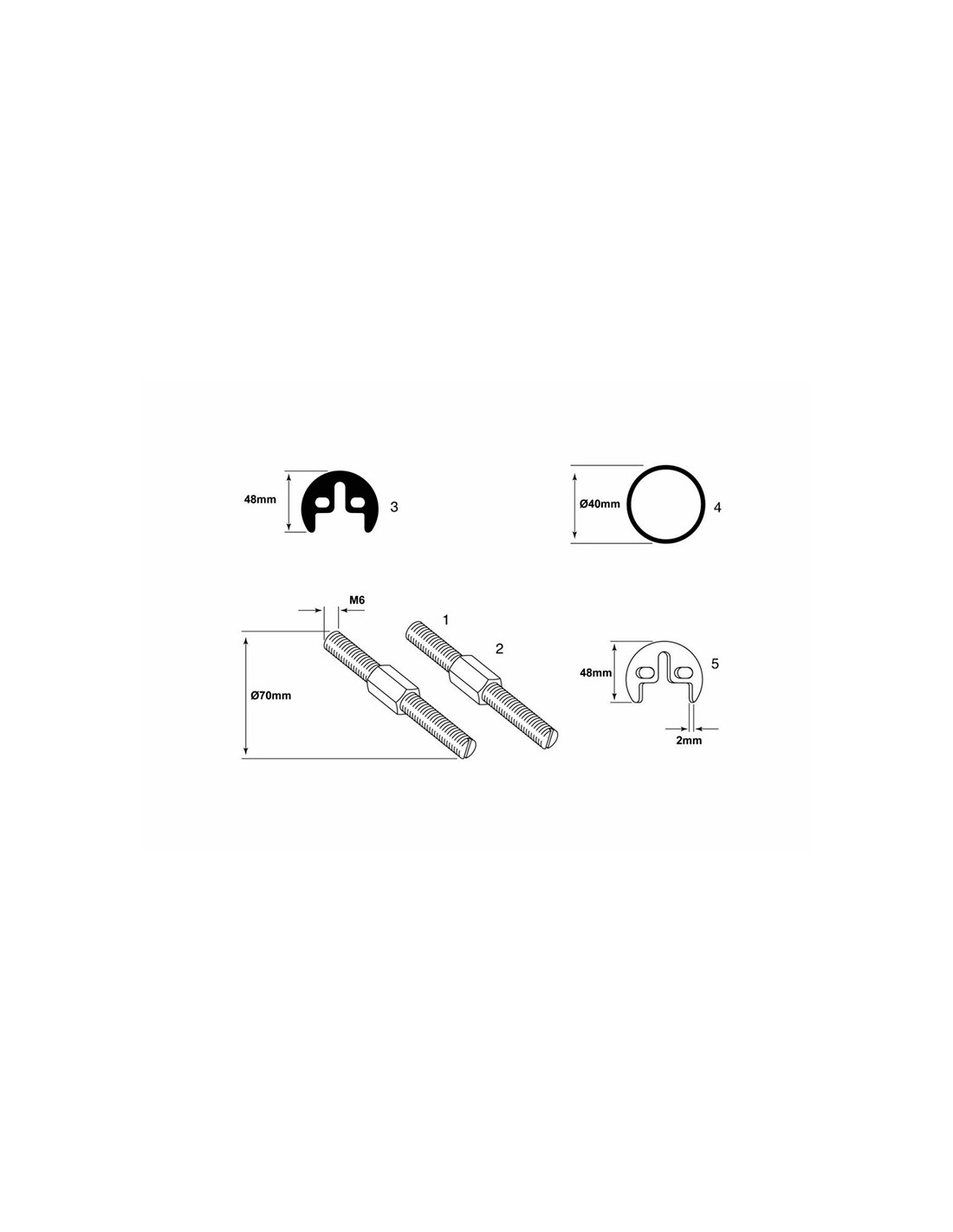 Juego fijación griferia m6 compuesto por 1 ud junta tórica ø40 mm, 1 ud junta goma 48 mm 1 ud base 48 x 2 mm 2 uds varilla ranurada m6 x 70 mm 2 uds tuerca larga m6