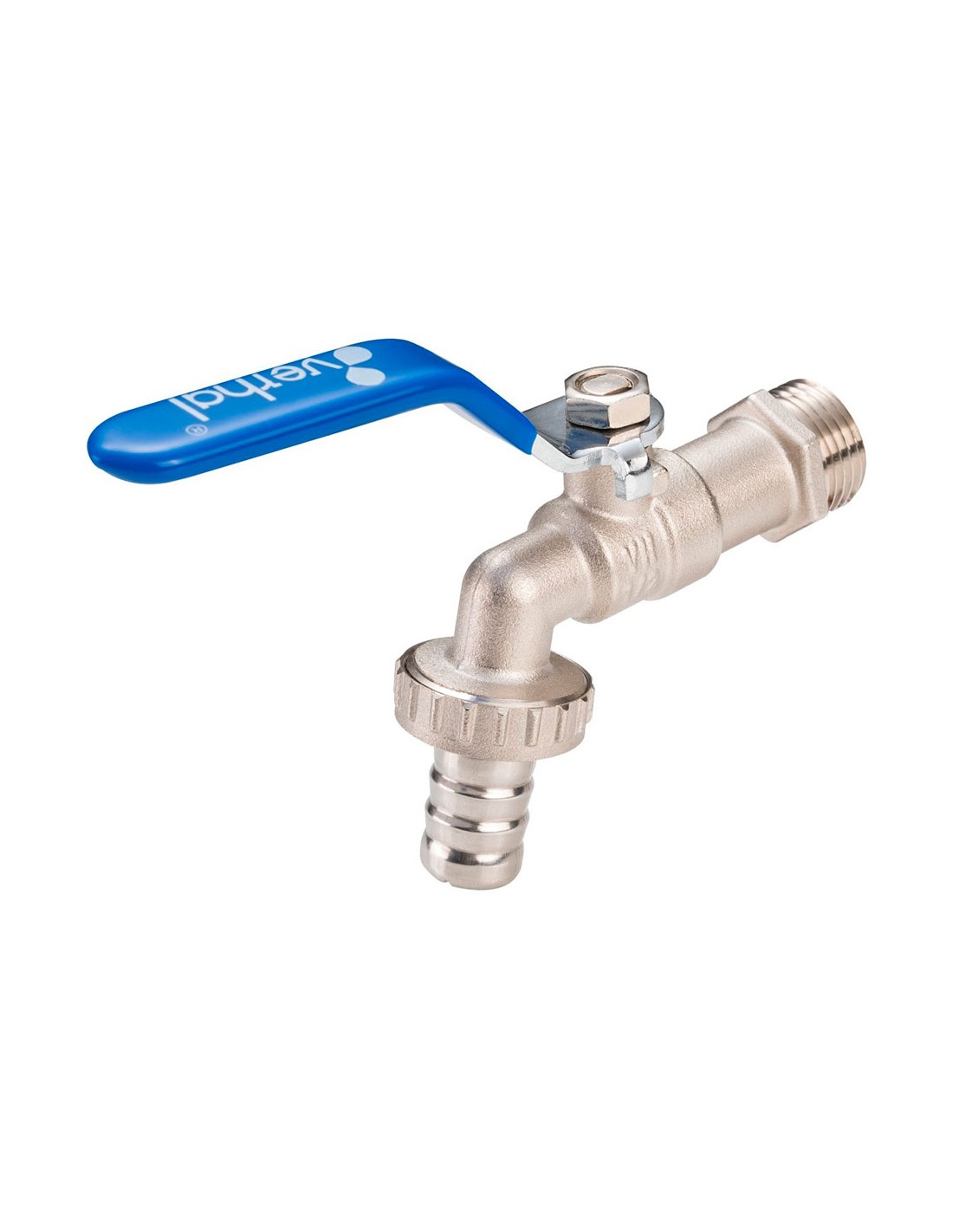 Grifo esfera, racor manguera, 3/4" x 1" presión nominal 16 bar, temperatura máxima 75°c, juntas nbr, asiento teflón, entrada rosca gas, cierre 1/4 vuelta, cuerpo latón niquelado, maneta: acero cromado