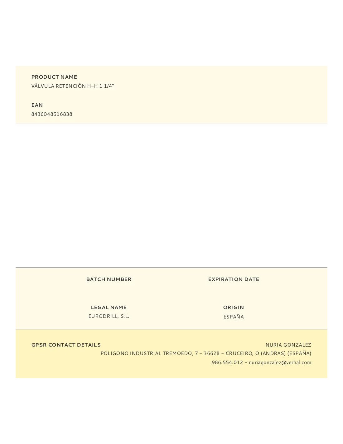 Válvula anti retorno h-h 1 1/4" presión nominal 16 bar, reforzada, asiento latón, muelle acero inoxidable