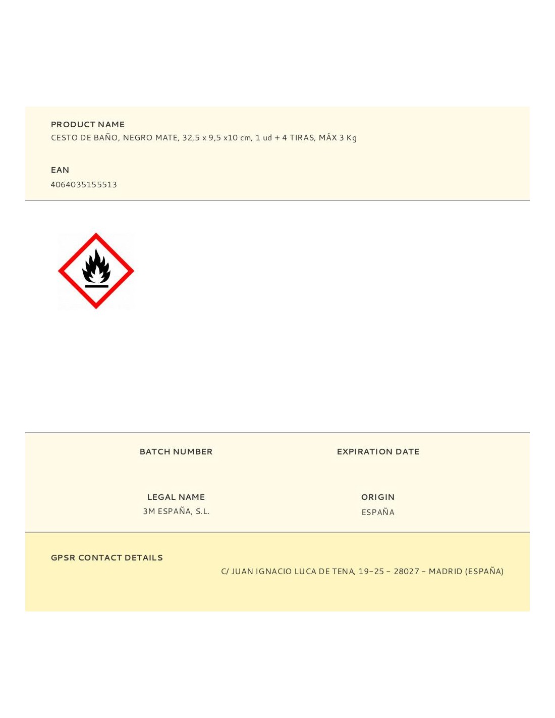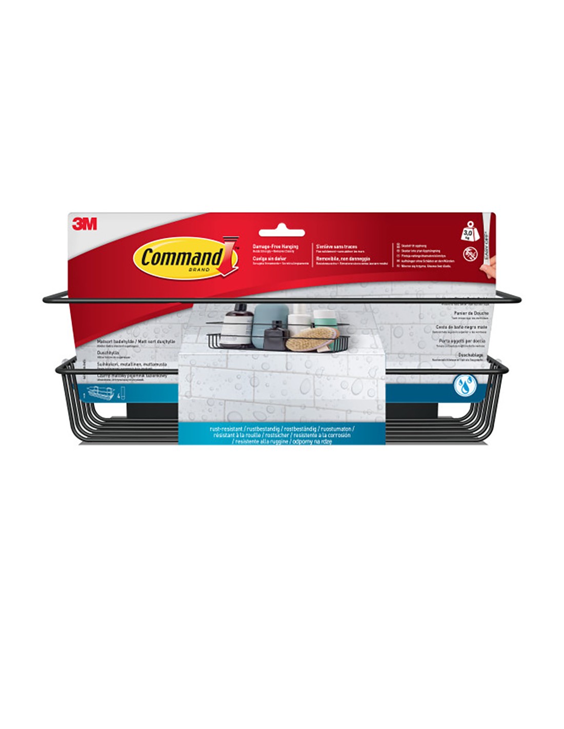 Cesto de baño, negro mate, 32,5 x 9,5 x10 cm, 1 ud + 4 tiras, máx 3 kg