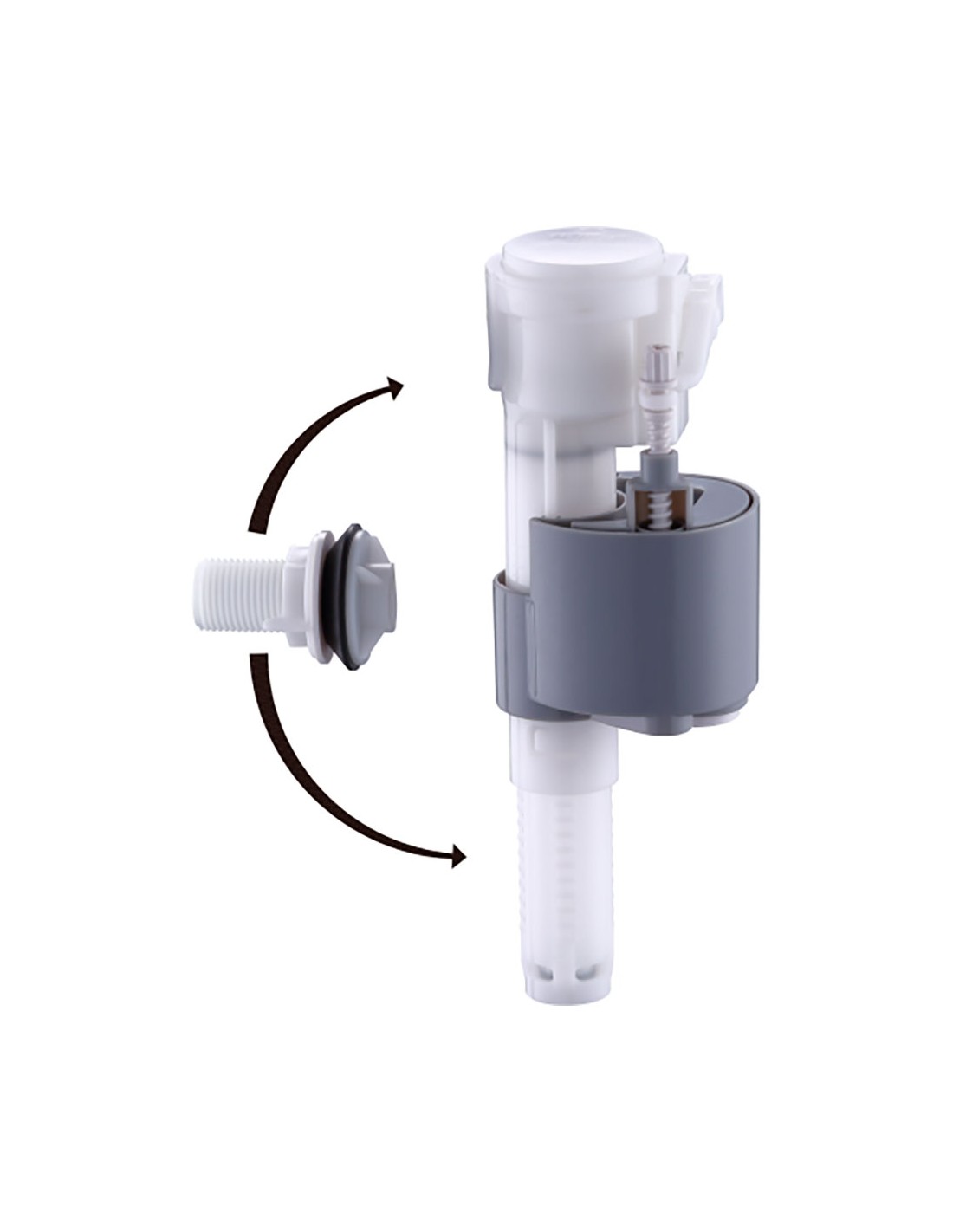 Flotador 2 en 1 compacto. válido para instalación inferior o lateral. conexión en pom 3/8 pulg. presión de agua: 0,10 - 10 bar. silencioso y rápido. presentado en bolsa individual con colgador