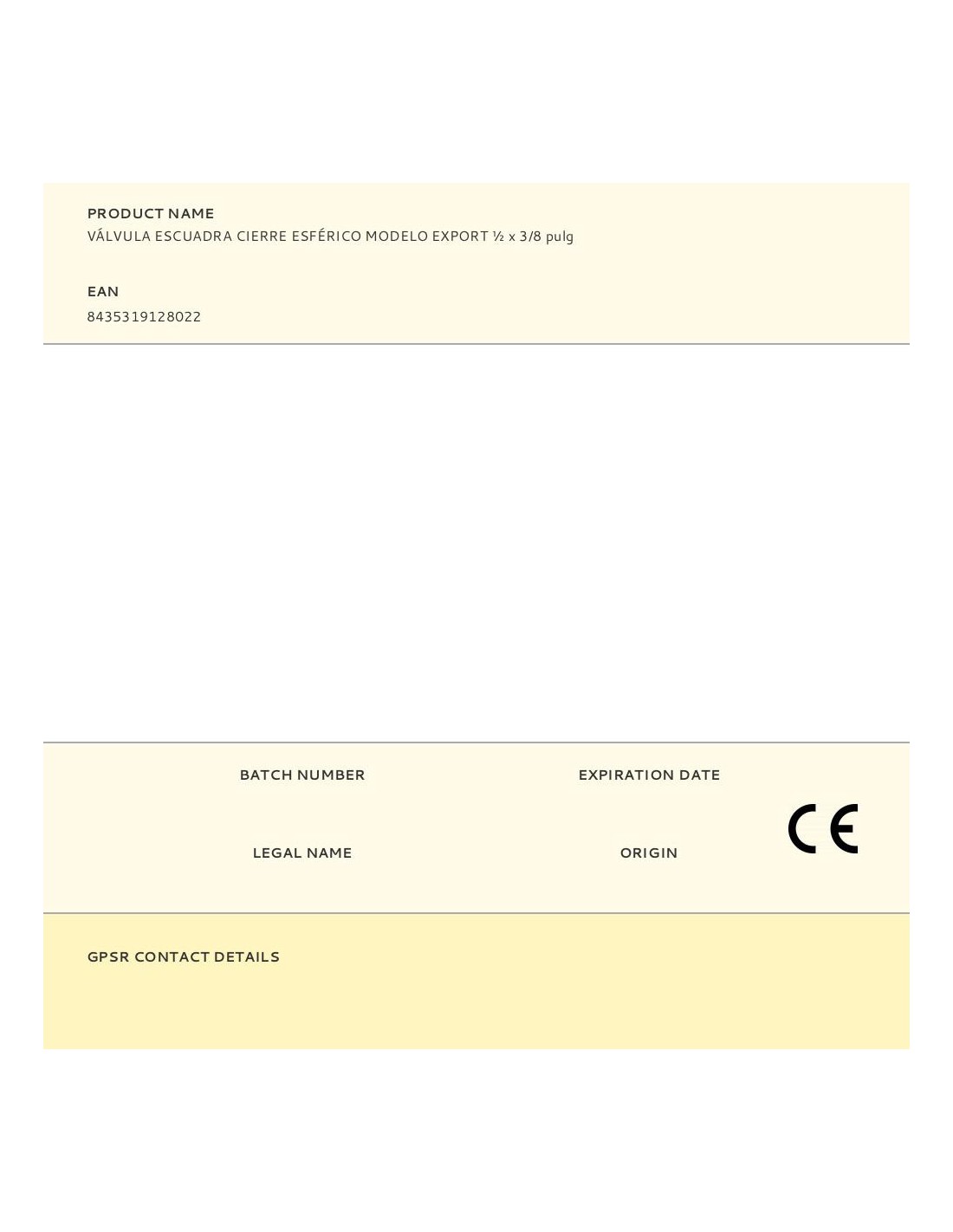 Válvula escuadra cierre esférico modelo export ø½ x 3/8 pulg cuerpo latón cw617n cromado, pomo abs cromado, cierre esférico, florón acero inoxidable rosca iso 228/1 (din 259), cierre rápido (1/4 vuelta) presión trabajo 8 bar (100 psi), 0 a 80°c uso en agua fría y caliente