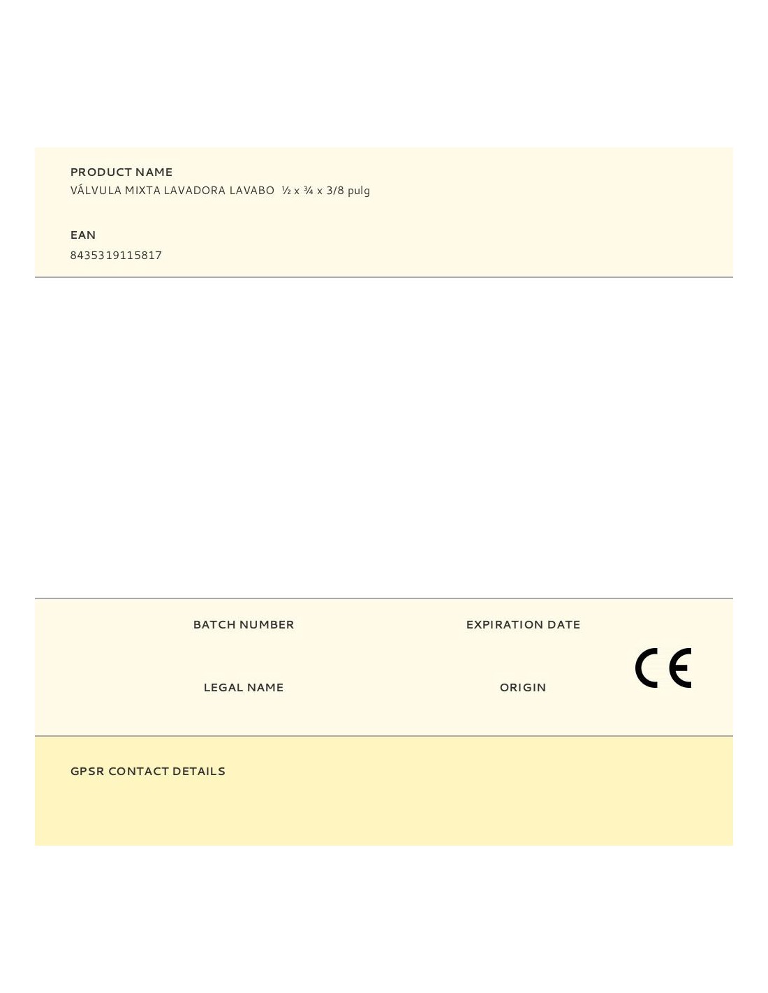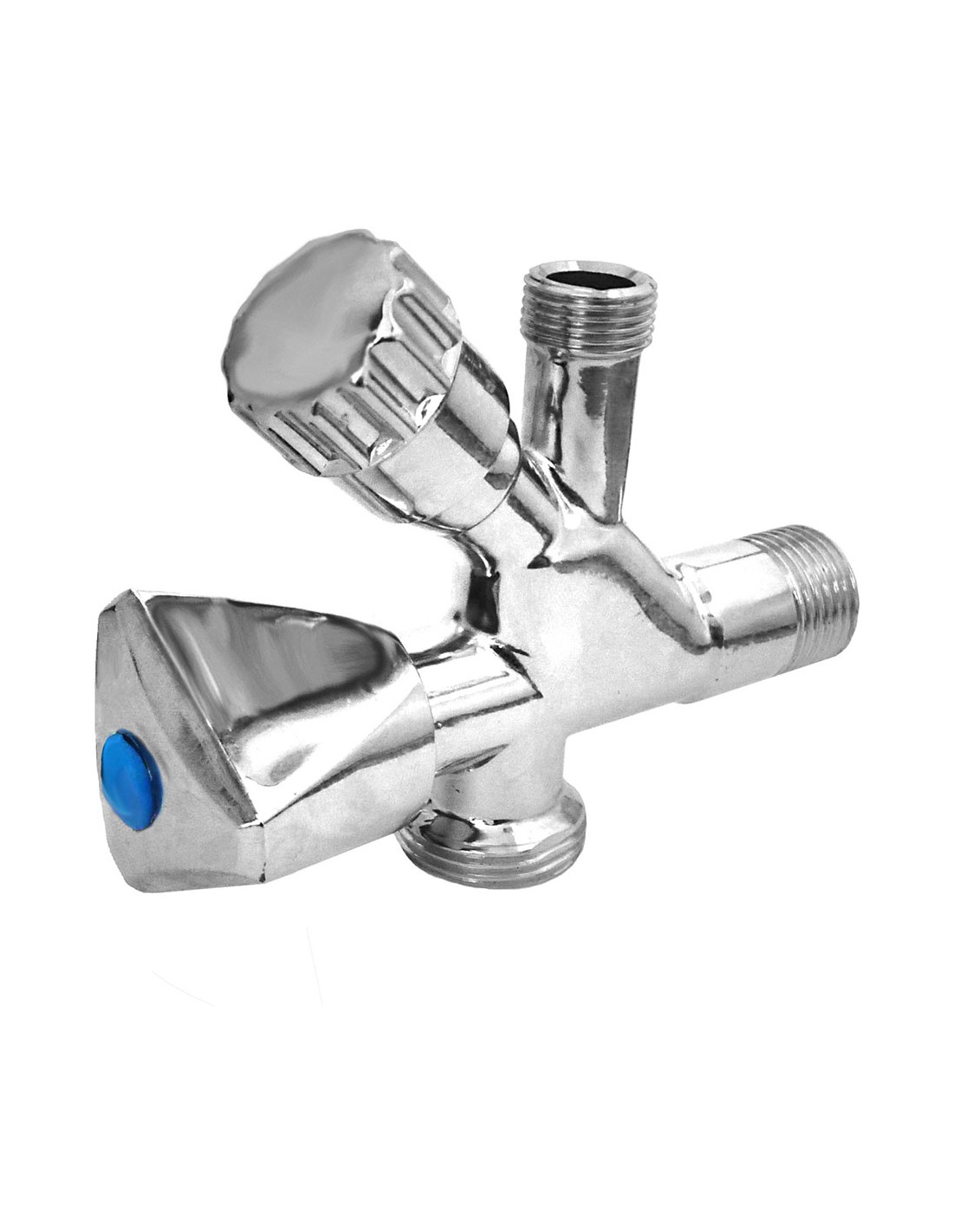 Válvula mixta lavadora lavabo ø½ x ¾ x 3/8 pulg cuerpo reforzado fabricado en latón cw617n, mandos en abs cromado y florón de acero inoxidable dos salidas independientes con roscas iso 228/1 (din 259), con cierre mediante mandos presión trabajo 10 bar (150 psi), 0 a 80°c uso en agua fría y caliente