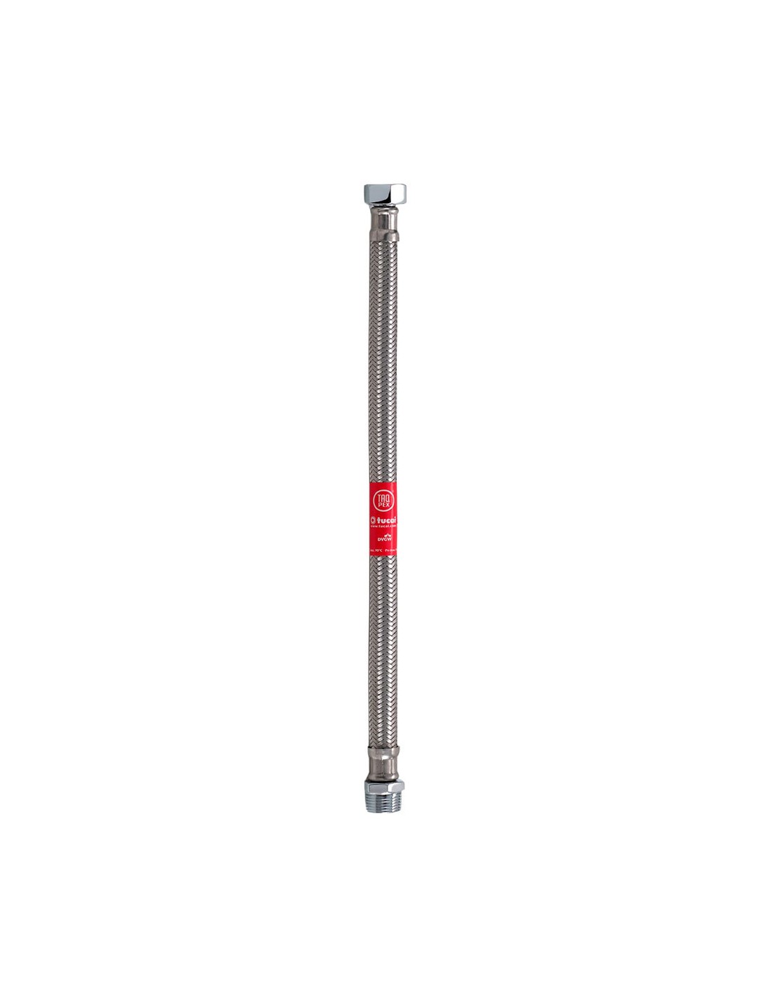 Latiguillo flexible inoxidable sanitario dn8x12 macho-hembra de ½ pulg de 500 mm de longitud, ø6 mm interior, caudal 28 l/min, máximo 10 bar - 70°c, para agua potable