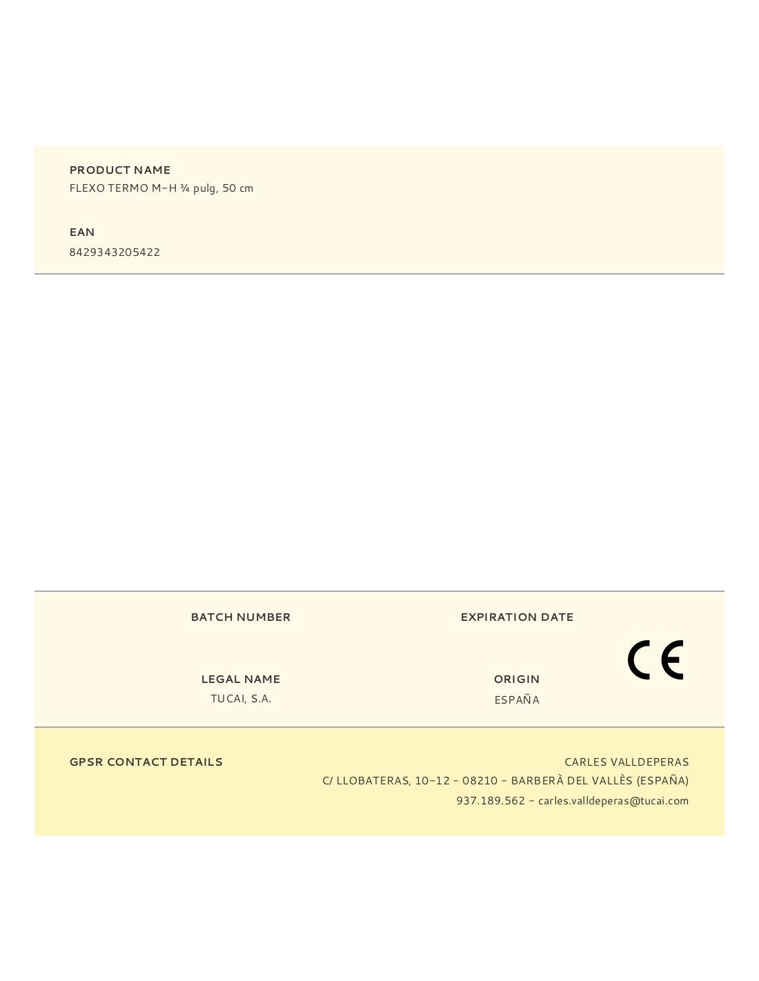 Latiguillo flexible inoxidable para termo dn13x17 macho-hembra de ¾ pulg de 500 mm de longitud, ø10 mm interior, caudal 70 l/min, máximo 10 bar - 70°c, para agua potable