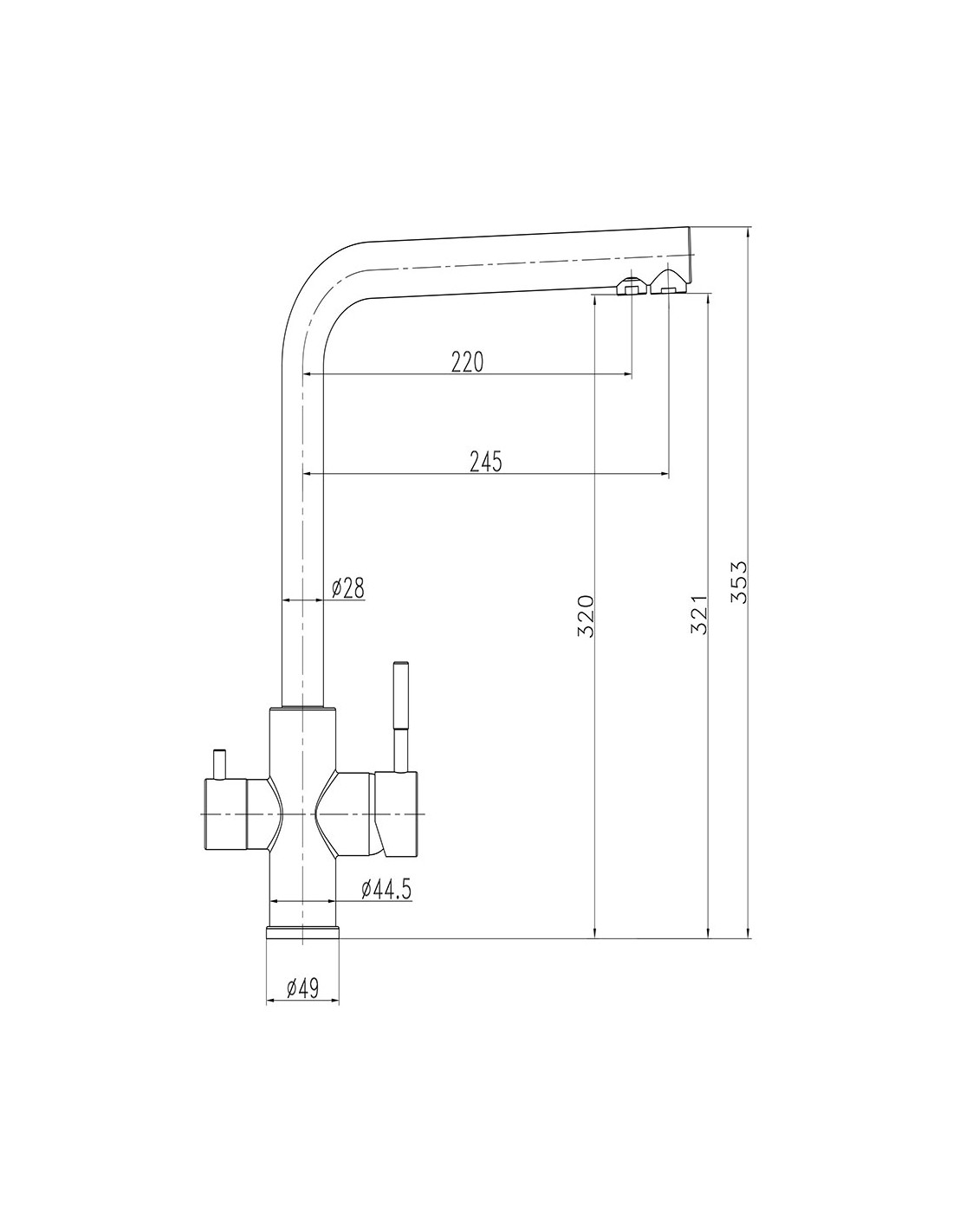 Grifo monomando de cocina caño alto osmosis, inox cepillado, 3 vías