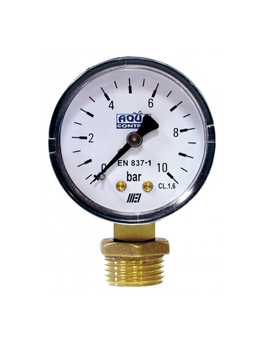 Manómetro diseñado para medir la presión del agua en sistemas de riego. rango de 0 a 10 bares, con conexión de ¼ de pulg y adaptador a ½ de pulg, permite un control preciso para proteger la instalación