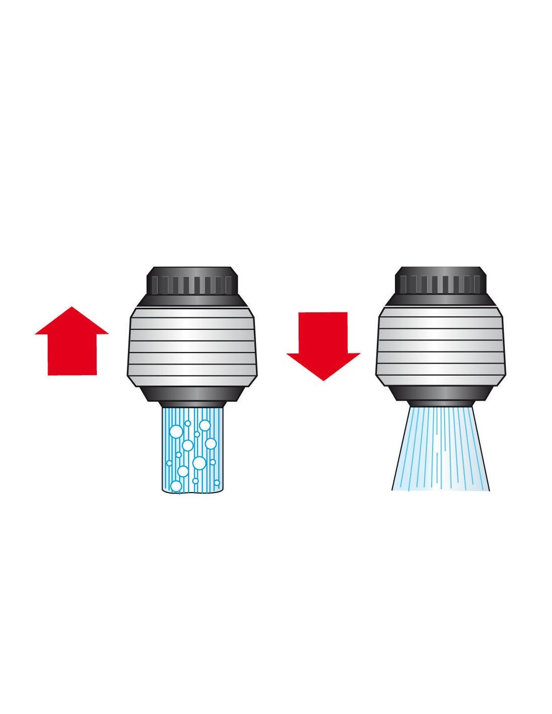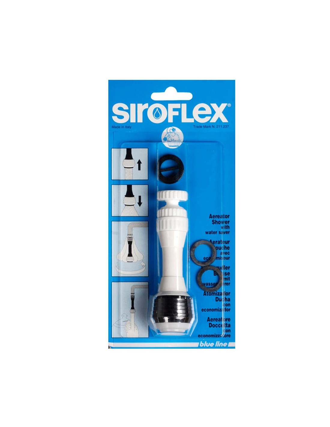 Atomizador con economizador de 11 cm de largo, serie blue line, para grifos de rosca externa de 22 × 1, rosca interna de 24 × 1, con cabezal orientable 360°. dispone de doble función de salida: chorro concentrado o modo ducha, diseño ergonómico en color blanco y cromado, ideal para el ahorro de agua y una limpieza más precisa en el fregadero, fácil instalación
